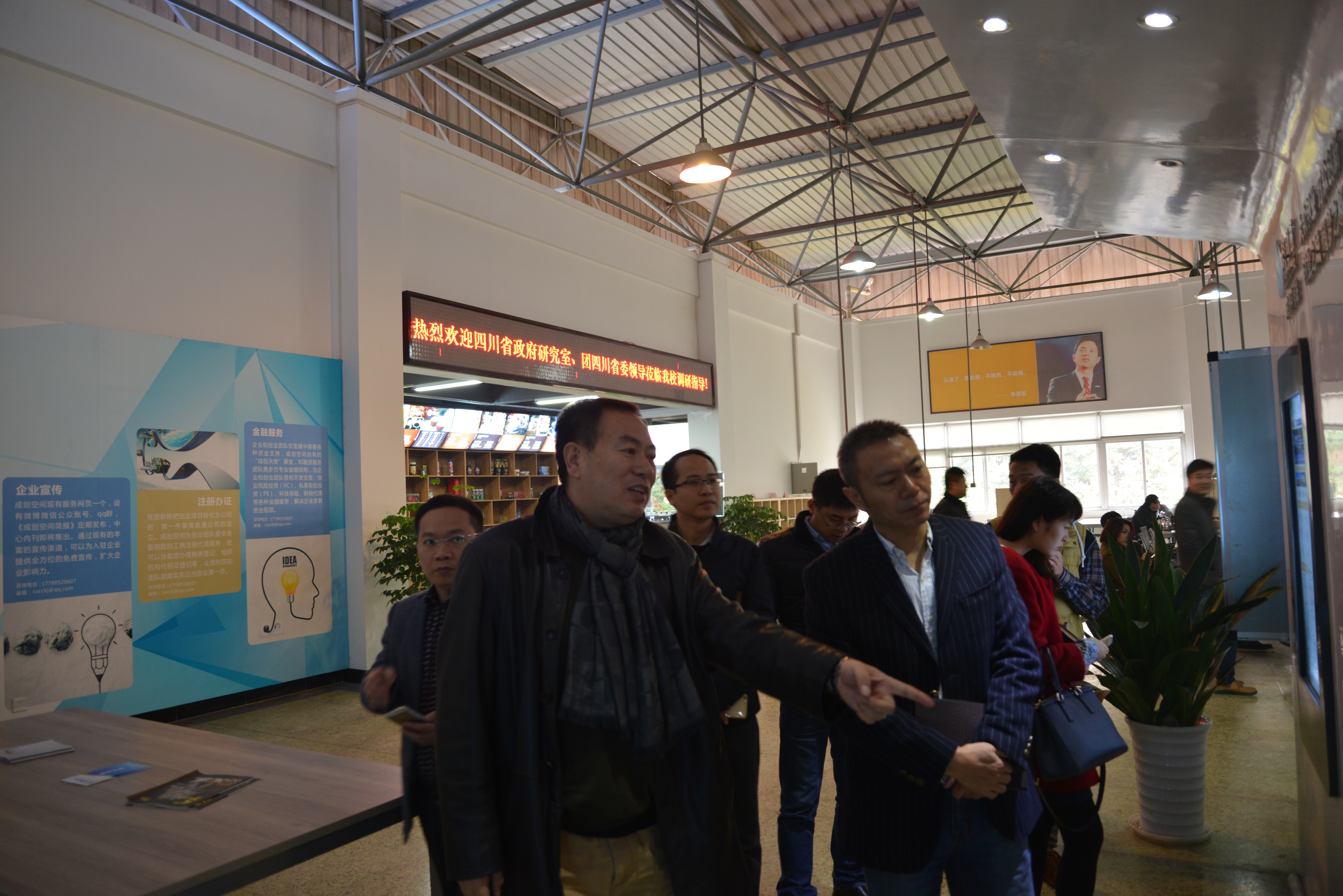 白鹏远一行首先来到了我校大学生创新创业孵化基地、成都市首批众创空间之一的“成创空间”,先后参观了路演大厅、创业大厅、多功能会议室、商务中心、洽谈室等创业场地,并考察了“成创空间”的建设及运营管理情况。