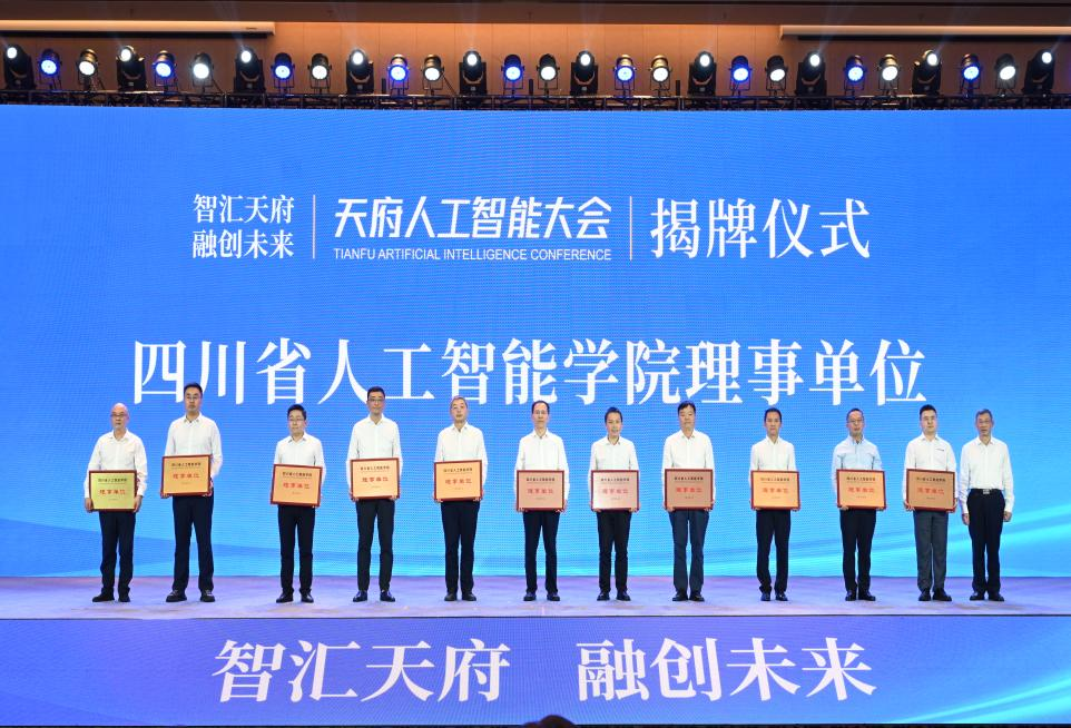 开幕式上还举行了四川省人工智能学院理事会授牌仪式,四川省委教育工委书记、教育厅党组书记、厅长余孝其为包括我校在内的11家理事单位代表授牌,吴锡代表我校接受四川省人工智能学院理事会单位认证牌匾。