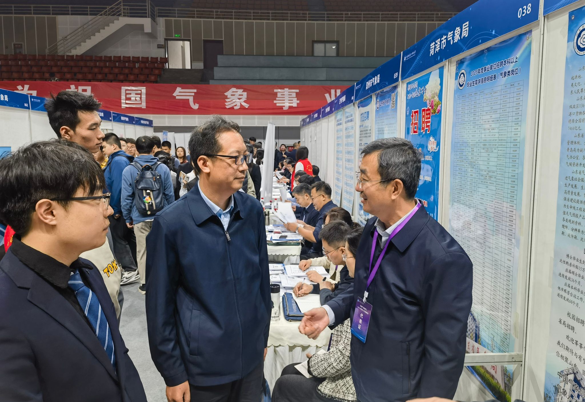 【本网讯】11月9日,全国气象部门2025年度人才招聘会在我校航空港校区体育馆举办。中国气象局在京单位和各省(自治区、直辖市)气象部门共170余家单位,提供超过2300个事业编制岗位,招聘专业以大气科学类为主,涵盖遥感应用类、地球科学类、环境科学类、计算机类、电子信息类、数理类、财会类等十几个学科领域,为气象行业用人单位和毕业生建立了“双向奔赴”契合点,为气象事业的高质量发展提供人才源动力。