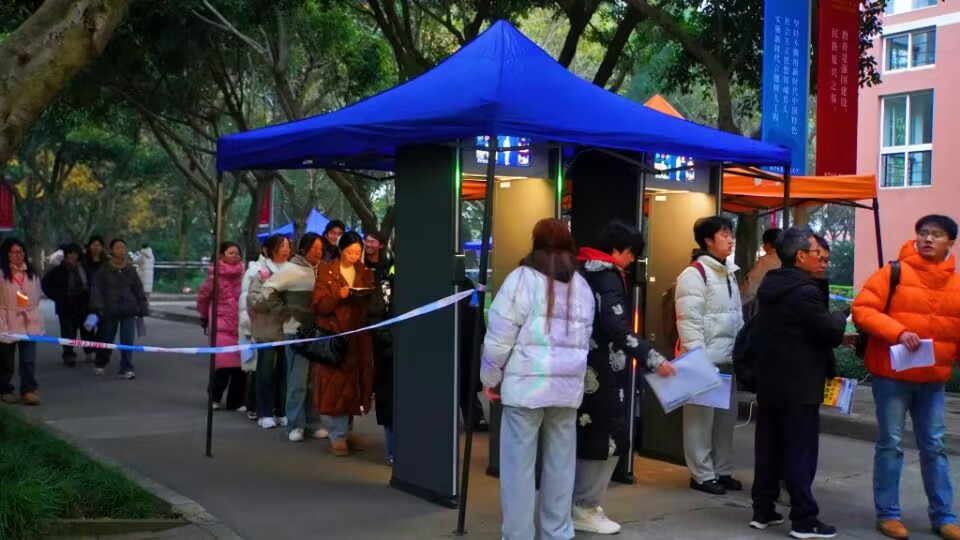 本次研招考试,三亿网考点严格落实上级要求,将考务工作的重心放在试卷保密以及考务安全上,构建了“六位一体”立体防护网,实现智能安检门全配备,两校区考点共配备11台智能安检门、设置了41个电子设备存放点(包括考务人员专用、研考考生专用、应急存放点)、两校区的每个考室均覆盖有手机 5G 信号屏蔽,共计设备100台,坚持人防、技防相结合,大力防范考试作弊,特别是 5G手机作弊行为,积极与移动运营商密切配合,采取多种手段防范高科技作弊情况的发生,有效确保了手机等电子信息设备“带不进、用不了、传不出”,从而实现“平安研考”;会同公安部门,加强试卷运输与存放管理,严格按照工作要求对保密室开展24小时4人不间断安全值守;考点各楼宇、楼层间配备有无线对讲机,供考点考务办公室、楼层工作人员、考务指挥中心、考点保卫、医务室沟通联系。确保考点组织实施工作安全平稳。