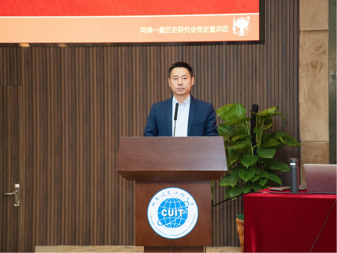 陈权亮在致辞中代表学校向王定放将军表示热烈欢迎和衷心感谢。他表示,“两弹一星”精神是中华民族的宝贵财富,是老一辈科学家和广大建设者用热血与生命铸就的丰碑。它不仅是中国科技自立自强的象征,更是激励新时代青年奋勇前行的强大动力。希望师生们深刻理解并传承弘扬“两弹一星”精神,学习老一辈科学家胸怀祖国、坚韧不拔、脚踏实地、勇于探索的崇高品质,将个人成长融入民族复兴的伟大征程,从“两弹一星”精神中汲取力量,以青春之我、奋斗之我,争做堪当大任的时代新人。