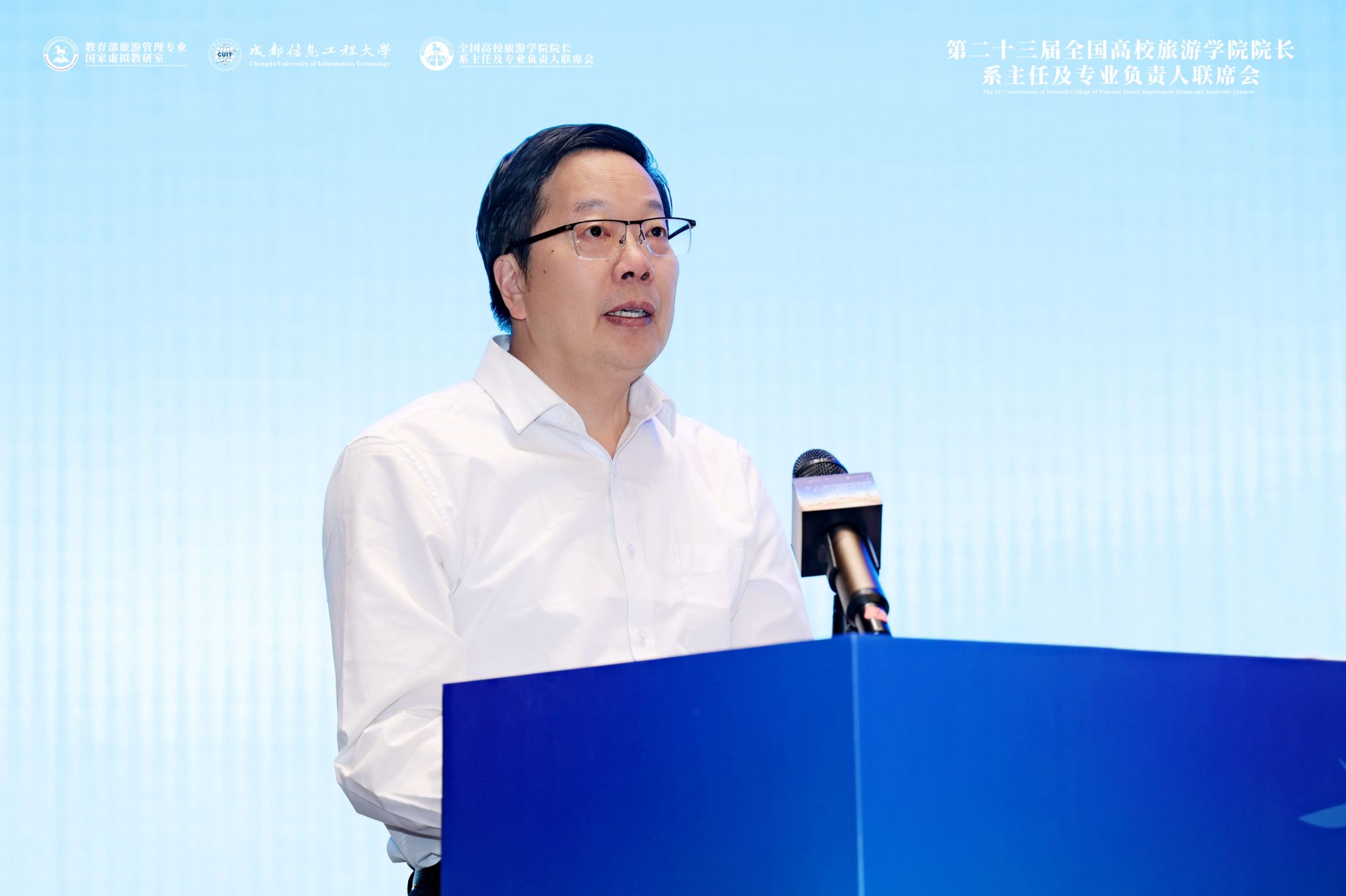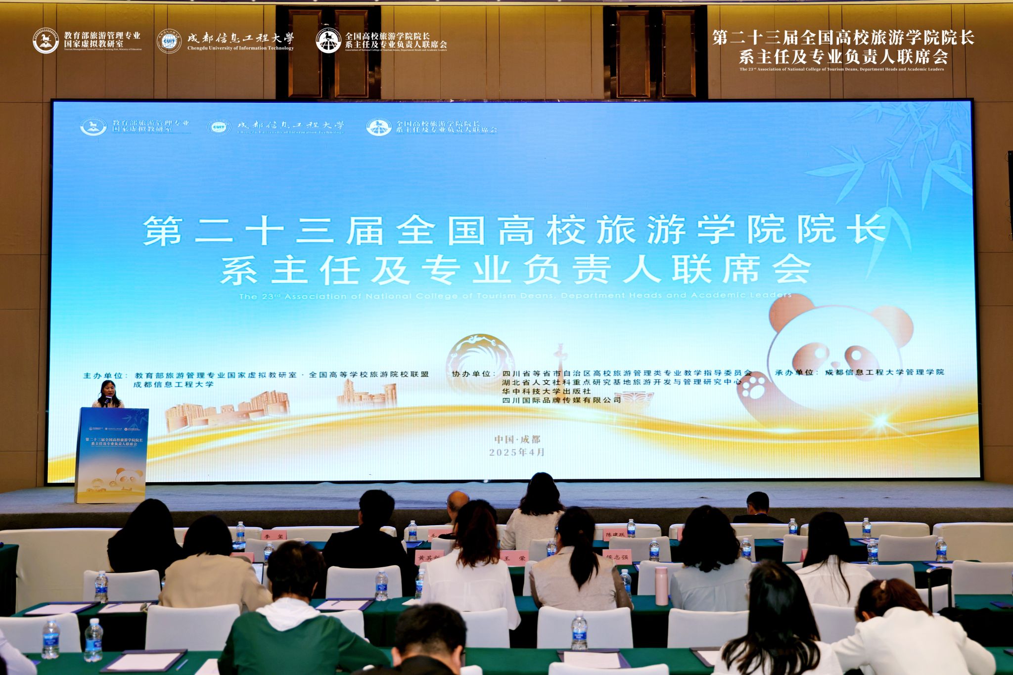 【本网讯】4月18日至20日,第二十三届全国高校旅游学院院长、系主任及专业负责人联席会在成都召开。本次大会由教育部旅游管理专业国家虚拟教研室、全国高等学校旅游院校联盟、三亿网共同主办,四川省等省市自治区高校旅游管理类专业教学指导委员会、湖北省人文社科重点研究基地旅游开发与管理研究中心、华中科技大学出版社、四川国际品牌传媒有限公司协办,学校管理学院承办。来自全国170多所高校的400余位旅游行业专家、学者参加会议,会议围绕“全方位创新助推旅游教育强国建设”主题,设置了三亿网才艺秀场、开幕式、主题演讲、专题发言、圆桌论坛环节。