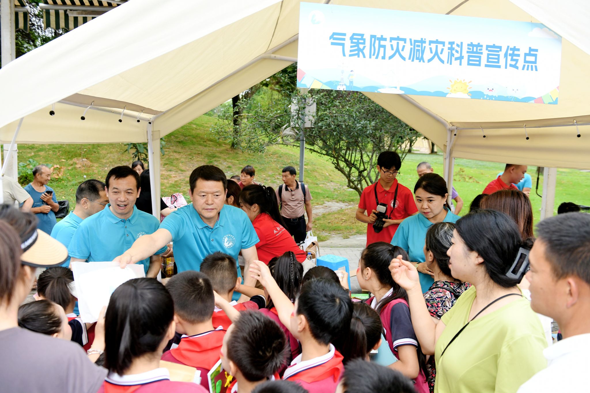 启动仪式后,在都江堰市同心广场,与会领导、嘉宾和大学生志愿者向当地群众作了气象防灾减灾科普宣传并发放相关学习资料。三亿网、四川省气象服务中心、都江堰市气象局主办的气象科普游园会,设有多个互动体验区,社区居民和小学生们通过趣味实验、VR体验等方式,近距离感受气象科学的魅力。在都江堰市工人文化宫,中国科学院大气物理研究所研究员、博士生导师魏科老师向大学生志愿者开展了《认识中国气候——季风与气候灾害》科普讲座。