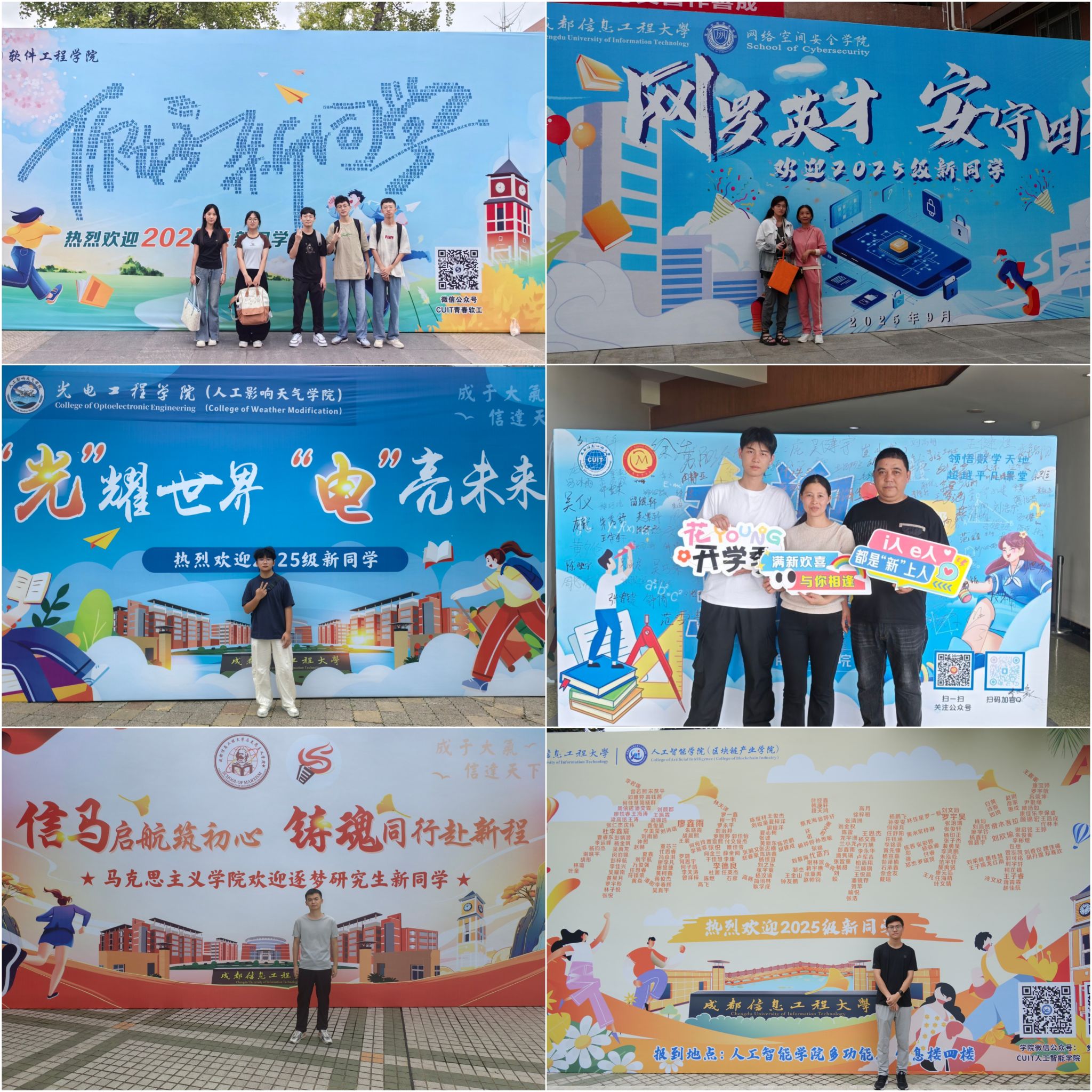 各学院别出心裁地布置喜庆精美的合影墙、欢迎标语、签名板等特色打卡点,让新同学感受到温馨舒适的校园氛围。大气科学学院精心策划的“家乡连线”活动,让新生们用图钉和线将家乡与学校相连,钉线勾勒出跨越山海的缘分;电子工程学院在迎新点位展示全国大学生电子设计竞赛优秀作品,志愿者带领新生操作“打靶小车”;通信工程学院在合影墙上用新生名字排列成学院名称,为2025级新生打造专属迎新记忆……创意性的欢迎方式,让新生和家长们深切感受到专属于成信人的真情告白与祝福鼓励。