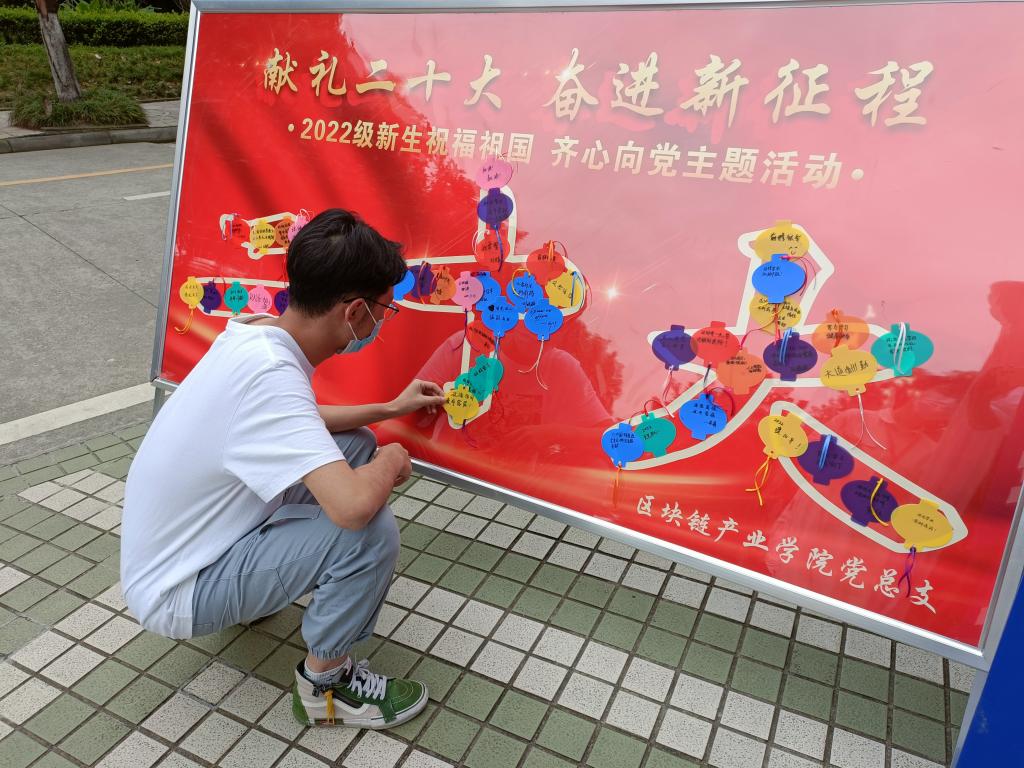 在各学院报到点,“等到你,真好!”“链接未来、智汇天下”“二进制写尽天下事 成信人共书新开始”“星辰大海创意车票”等暖心、奋进的欢迎喷绘不仅是学院对同学们“浓情蜜意”的开学问候,也彰显着学院发展的精神内涵,吸引了同学们纷纷驻足合影留念。结合专业文化和特点,各学院推陈出新、精心准备了特色的入学报到“彩蛋”:大气科学学院开展了新生畅言理想活动;区块链产业学院开展了新生祝福祖国、献礼二十大主题活动;电子工程学院、自动化学院在报到现场展示了师生部分科创作品、科研成果,使新生对自己的专业和学院有了更直观的认识。