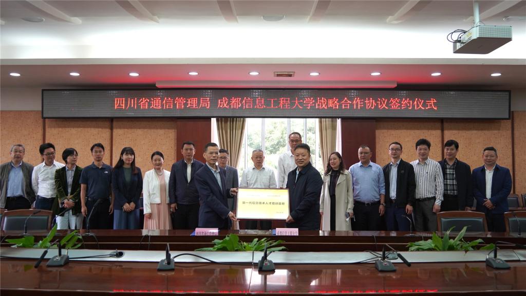 【本网讯】5月17日是世界电信和信息社会日。上午,四川省通信管理局党组书记、局长邢海英,党组成员、纪检组长、副局长刘小文一行来校交流,并与我校签署战略合作协议。学校校长余敏明、副校长舒红平参加了交流座谈会。会议由舒红平主持。