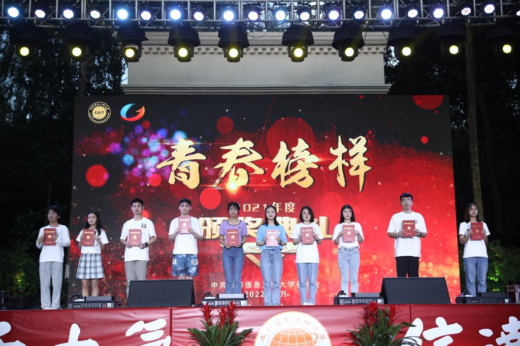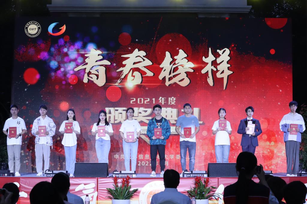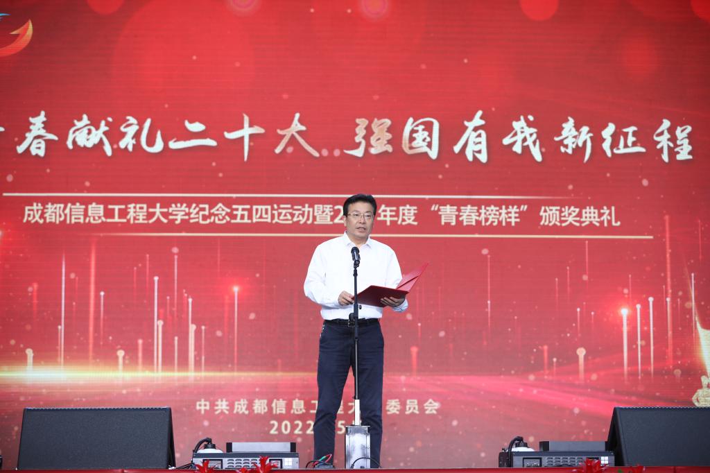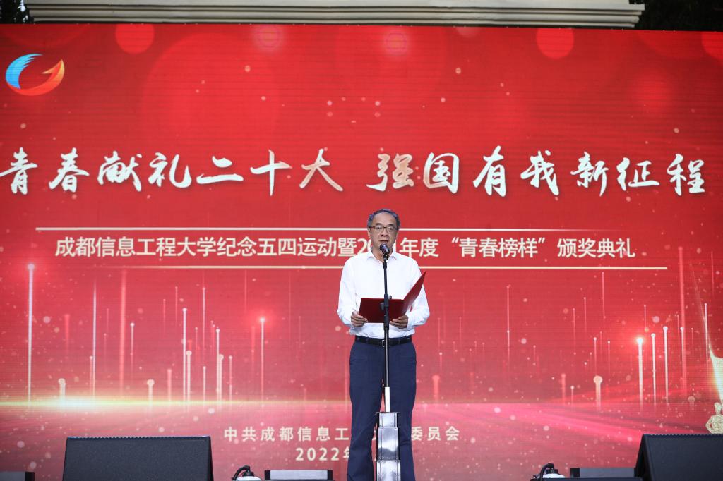 周激流在颁奖典礼上致辞。他代表学校党委和行政向受到表彰的先进个人和集体表示祝贺,向长期致力于“为党育人、为国育才”的教职员工表示感谢,向广大热爱祖国和人民,努力拼搏、青春昂扬,永远跟党走的成信青年学子致以节日的问候。他提到,表彰2021年度“青春榜样”,就是要弘扬五四精神,发扬爱国热情,牢固树立远大理想,用榜样的力量激励广大成信学子拼搏进取、成就自我。他希望,身逢伟大时代的广大成信学子深刻领会、准确把握时代赋予当代青年的责任,要热爱伟大祖国、树立远大理想,牢记习近平总书记的谆谆嘱托和殷切期望,做党的科学理论的学习者、传播者、实践者;要担当时代责任、勇于砥砺奋斗,做新时代中国特色社会主义事业的参与者、实践者,做一名快乐的追梦人、懂得感恩的奋斗者;要练就过硬本领、锤炼品德修为,以时不我待的紧迫感,积极主动学习新知识、新思想,争做德才兼备、知行合一的新时代中国青年。他号召成信学子秉承“成于大气、信达天下”的校训精神,情系国家、放飞青春梦想、书写人生华章,为建设开放的特色鲜明的高水平三亿网、为实现中华民族伟大复兴的中国梦贡献青春力量。