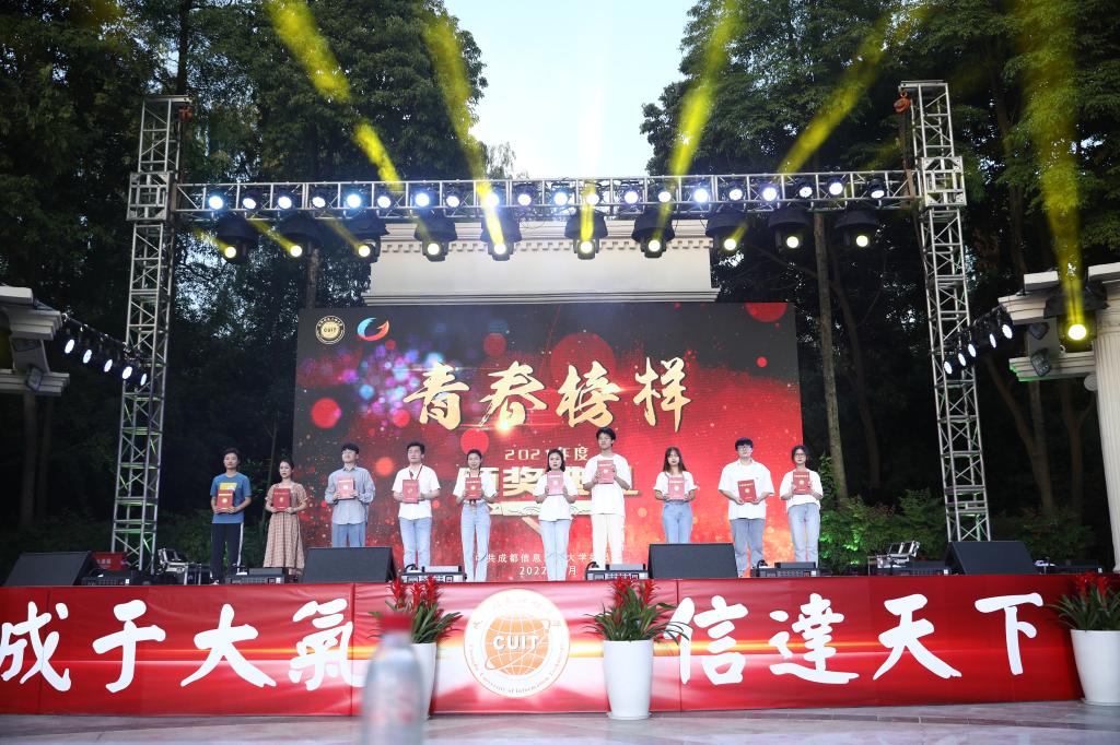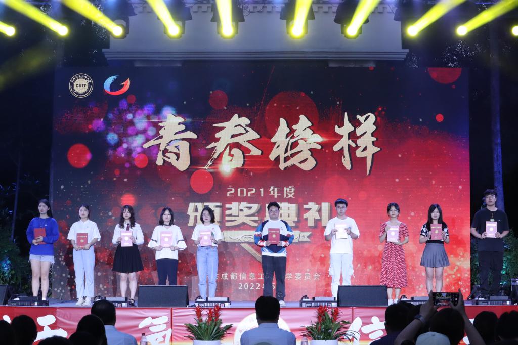 在热烈的掌声中,学校领导为2021年度“青春榜样”获奖个人和集体颁奖。