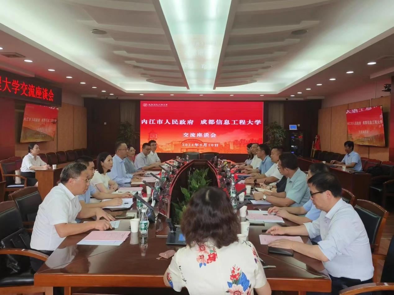 内江市人民政府市委组织部、市科技局、市经信局、市统计局、高新区管委会、市中区科技服务中心,我校研究生处(学科建设办公室)、科技处(大学科技园管委会办公室)、招生就业处、资源环境学院、电子工程学院(大气探测学院)、自动化学院、通信工程学院(微电子学院)、光电工程学院、管理学院、统计学院、大学科技园管理有限公司的主要负责人参加了交流座谈。