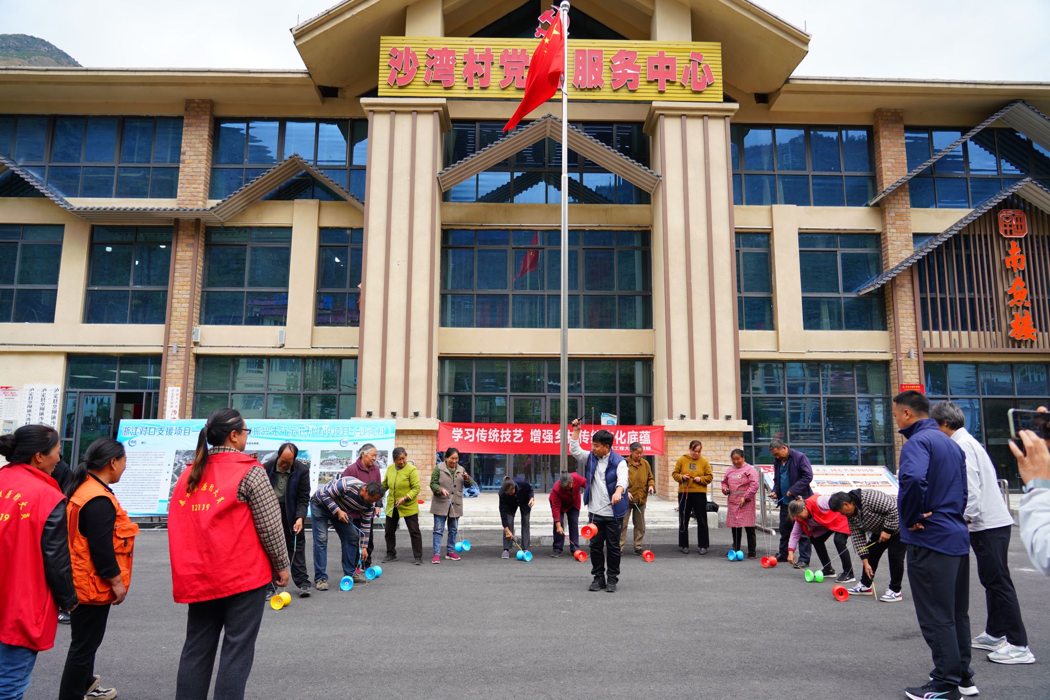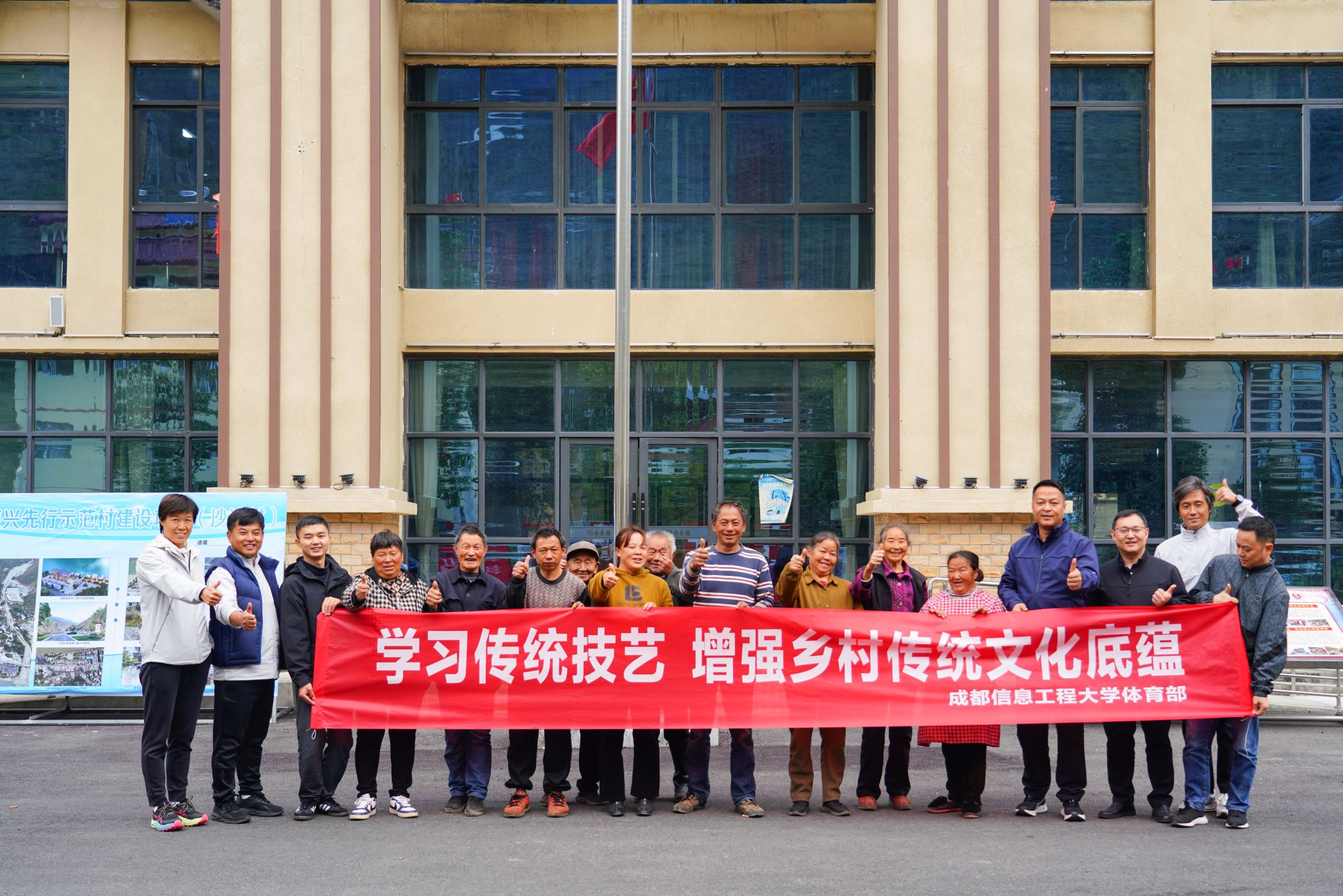 【本网讯】为深入学习贯彻党的最新理论成果,推动党的理论在基层落地生根,充分发挥高校资源优势,同时弘扬传统体育文化,提高村民文化及身体素质,赋能乡村活力发展。11月6日,学校党委宣传部副部长袁华、体育部主任程艺一行赴泸定县沙湾村,开展“文化下乡”活动。本次活动内容包括开展“感党恩、听党话、跟党走”专题宣讲及“传统技艺乡间行”项目体验。
