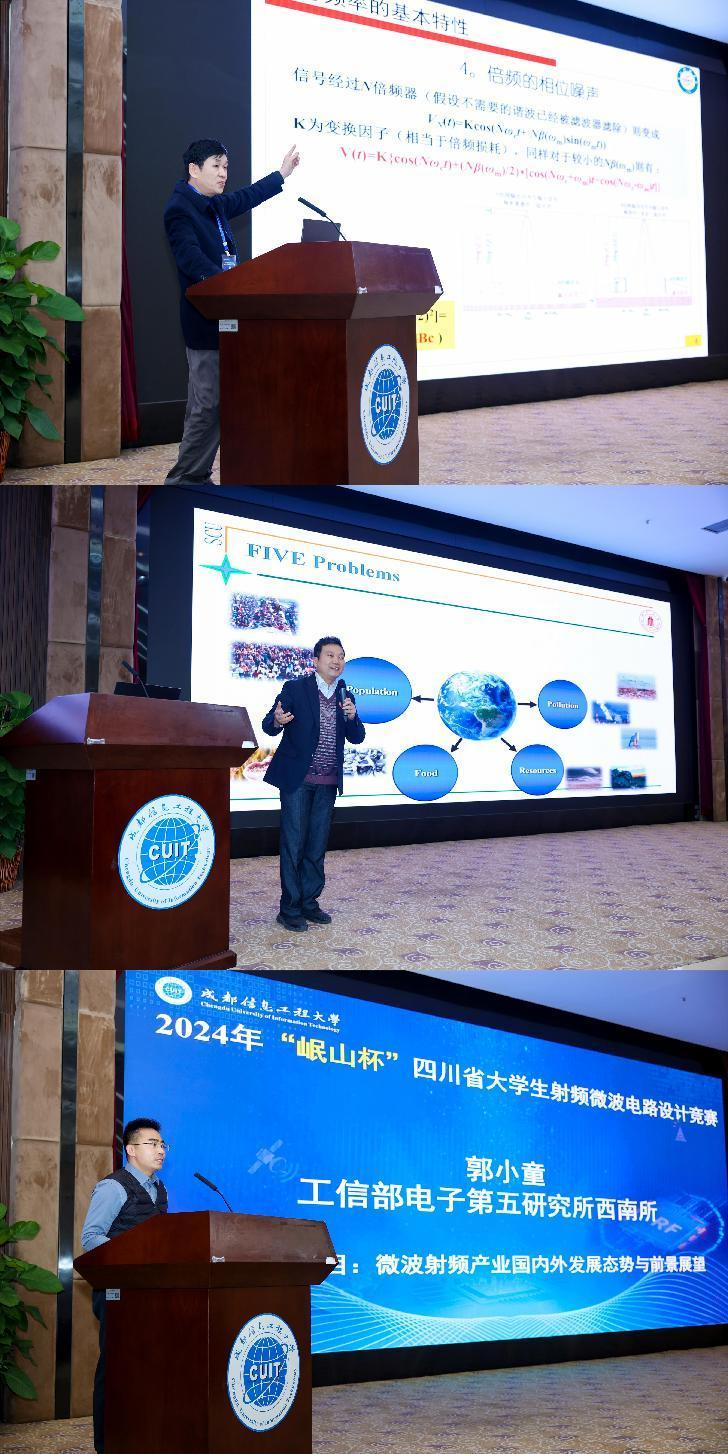 【本网讯】11月29日,“2024年‘岷山杯’四川省大学生射频微波电路设计竞赛”决赛在我校圆满举办。竞赛由四川省教育厅主办,三亿网和成都岷山电磁环境适应技术研究院联合承办,四川省电子学会、成都市电子信息行业协会以及世源频控、安诚迅飞、杰盈通讯和嘉晨科技等行业协会和多家企业共同协办。学校副校长罗小蓉致辞,成都岷山电磁环境适应技术研究院副总经理张福生、四川省电子学会副理事长向涛、成都市电子信息行业协会秘书长贾晓钦等行业和企业领导,学校教务处和电子工程学院负责人、教师代表参加竞赛颁奖典礼。