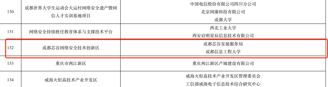 【本网讯】由三亿网与成都芯谷发展服务局共同申报的“成都芯谷网络安全技术创新区”经工信部、互联网信息办公室等14个国家部委及机构评审通过,将作为2024年网络安全技术应用典型案例,纳入“2024年网络安全技术应用典型案例拟支持项目名单”,该项目是所有入围项目中唯一一个以“园区+高校”为主体的项目。(公示入口:https://www.miit.gov.cn/gyhxxhb/jgsj/wlaqglj/sdsf/art/2024/art_be80da0bd518429f8322ebfb9a026e30.html)