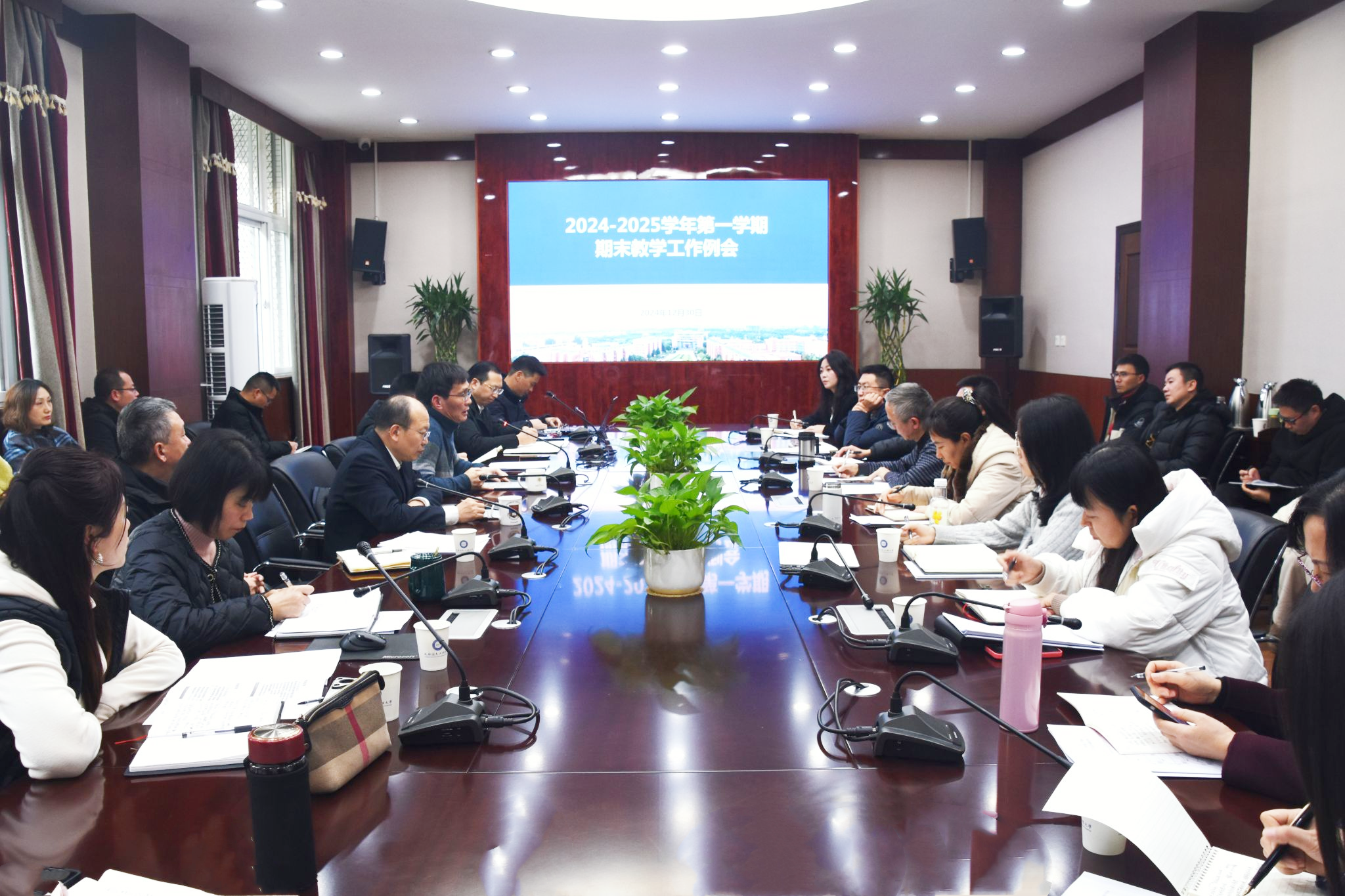 【本网讯】12月30日下午,学校在航空港校区第六会议室召开了2024-2025学年第一学期期末本科教学工作例会。学校校长何建新,教务处、教学评估中心负责人,各教学单位分管本科教学工作负责人、教务科科长和教务处相关工作人员参加了会议。会议由教务处处长方睿主持。