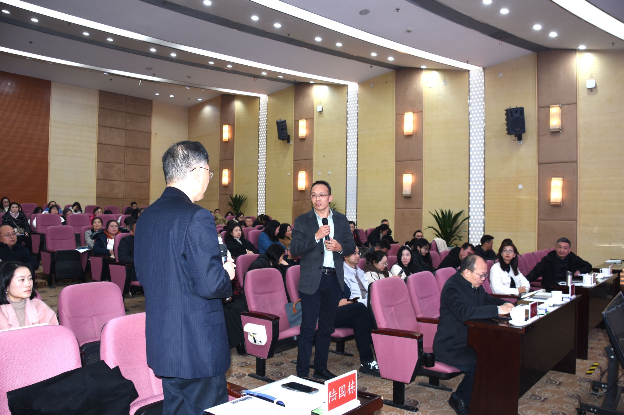现场参会教师围绕文管类专业教学成果奖申报、特色专业具体工作凝练、教师课程建设等具体问题踊跃提问,向陆国栋教授请教凝练和申报关键点,并进行沟通交流。