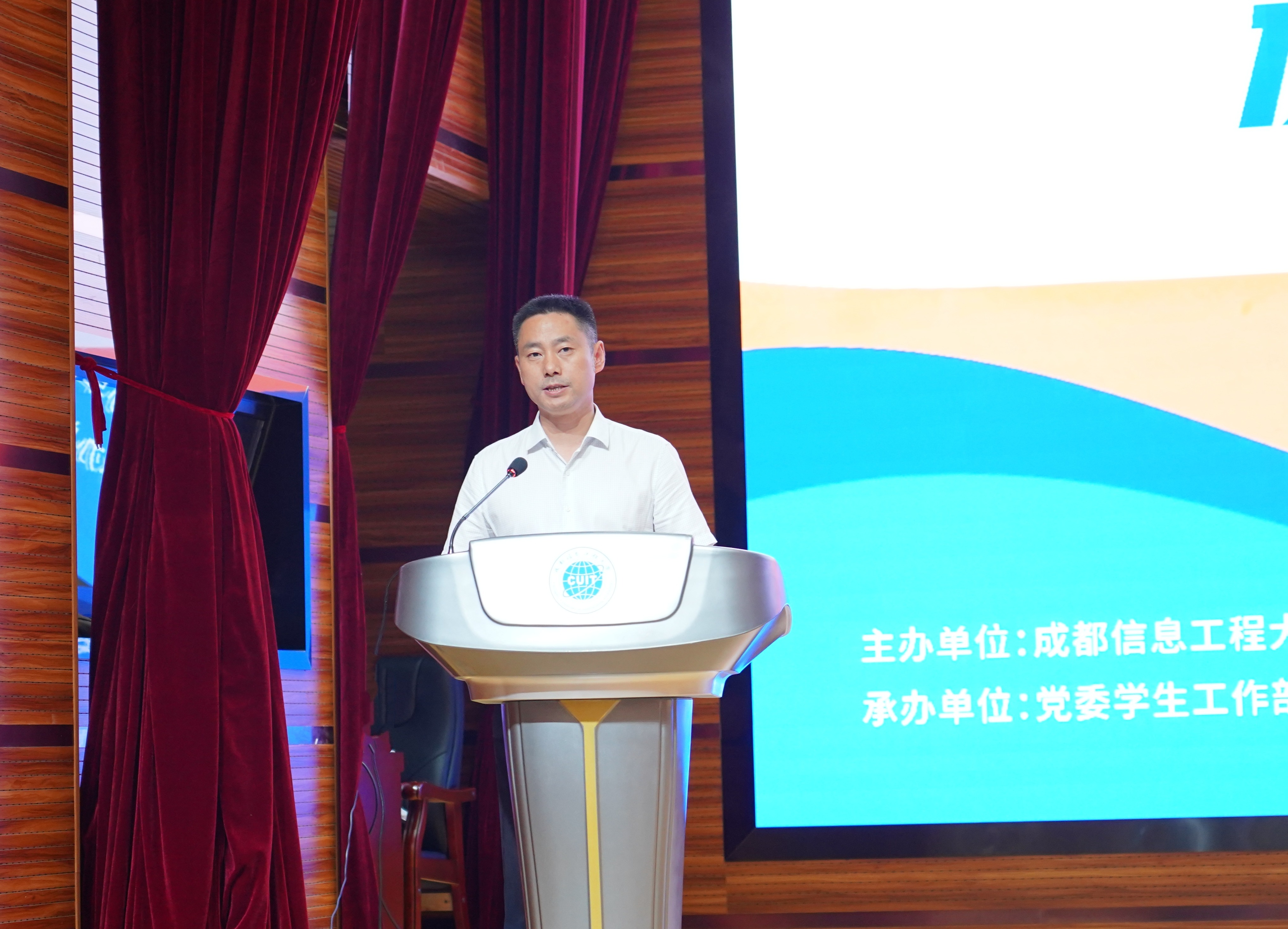 陈权亮在致辞中对为期两个月的赛事筹备与承办工作给予高度评价,向全体裁判员、工作人员及各职能部门的辛勤付出表示诚挚的感谢。他指出,本届体育联赛的成功举办,是“团结拼搏、追求卓越”成信精神的生动体现,更是学校推进体教融合的生动实践。他强调,体育不仅是强健体魄的方式,更是塑造健全人格、培育高尚品德的重要载体。未来,学校将持续深化体教融合,构建“课程教学 + 竞技训练 + 体质监测 + 文化浸润 + 社会服务”五位一体的育人体系,全方位助力学生成长成才。