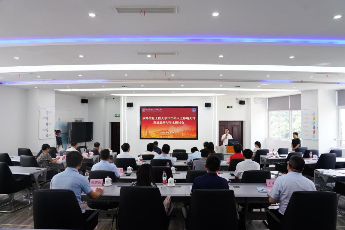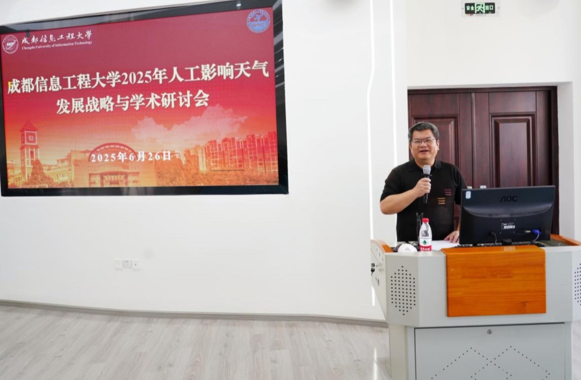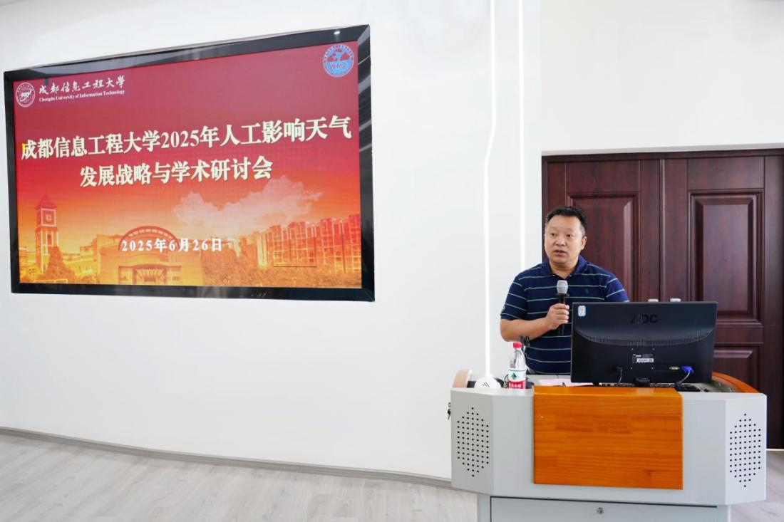 【本网讯】6月26日上午,由中国气象局人工影响天气中心(以下简称“人影中心”)与我校联合主办的“三亿网2025年人工影响天气发展战略与学术研讨会”在我校召开。中国气象局人影中心组长熊毅、学校副校长舒红平、北京大学毛节泰教授,以及来自中国气象局人影中心、北京市气象局人影办、四川省气象局人影办、陕西中天火箭技术股份有限公司、成都远望未来雷达科技股份有限公司、四川腾盾商用飞机有限责任公司、京信科技股份有限公司等单位的领导与专家齐聚一堂,共商人影发展大计。会议由学校科技处处长李乐中主持。