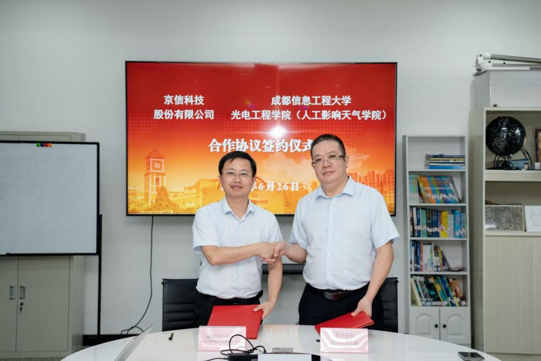 会议同步进行了人工影响天气学院与京信科技股份有限公司校企战略合作协议签约仪式。公司将在学院设立优秀学生奖学金,并与学校协同推进技术攻关、高层次人才培养等领域的深度合作,携手推动人影事业高质量发展。