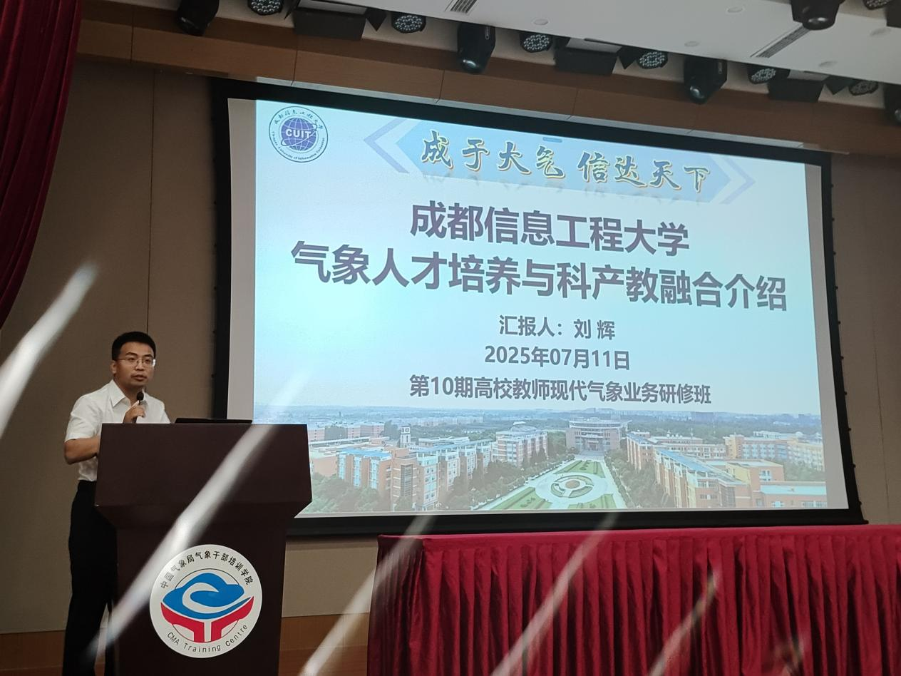 【本网讯】本网讯为落实《教育部中国气象局关于加强气象人才培养工作的指导意见》(教高〔2015〕2号),推进气象高等教育与现代气象业务的衔接,提升气象人才培养质量,根据《中国气象局2025年重点培训计划》(气发〔2025〕26号)安排,中国气象局气象干部培训学院于2025年7日至12日举办第10期高校教师现代气象业务研修班。来自全国23所高校的34名教师参加了本次研修。我校邹茂扬、张轩文、时一文、刘辉老师参加培训。
