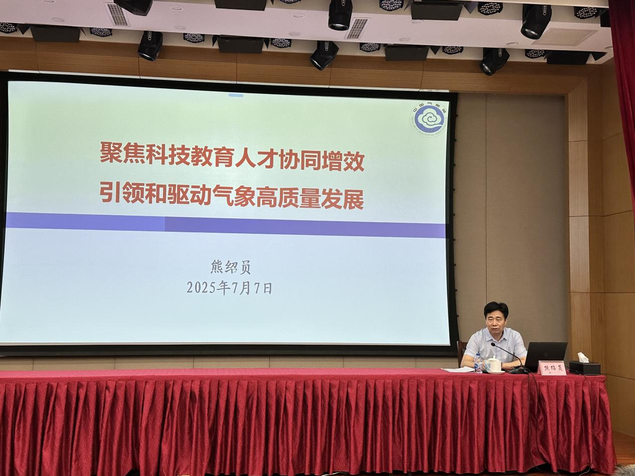 中国气象局副局长熊绍员为学员讲授开班第一课《聚焦科技教育人才协同增效 引领和驱动气象高质量发展》。他从“把握方向定位——立业之本”“对标现实需要——必由之路”“明确任务举措——务实之举”三个维度,系统阐述了气象高质量发展的战略地位、核心目标与重点任务,为气象人才培养、科学研究及科产教深度融合指明了方向。