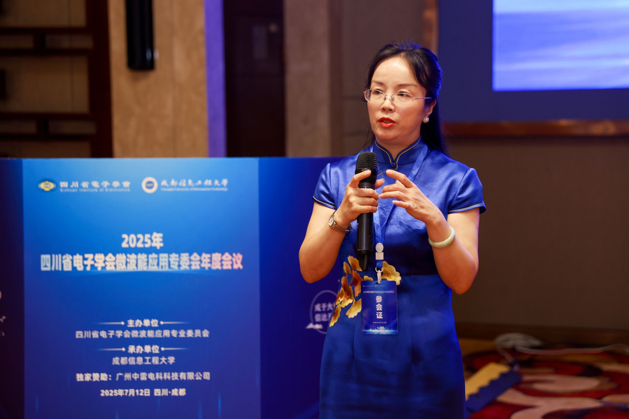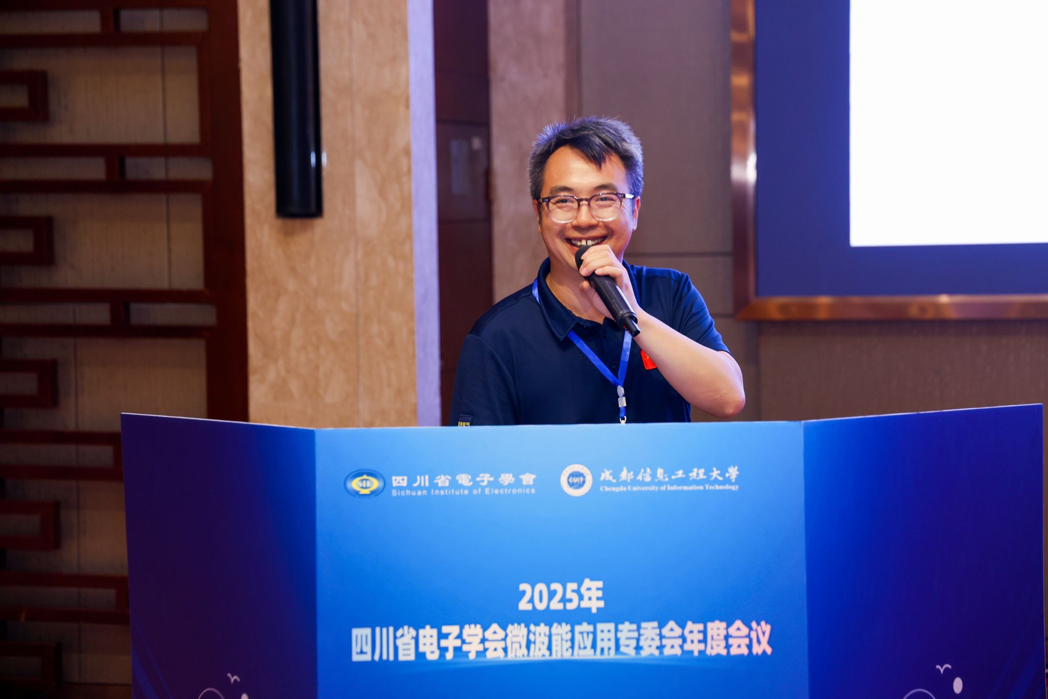 四川省电子学会微波能应用专委会主任委员、四川大学黄卡玛教授发表致辞,回顾了专委会近年来的工作成果,并对未来研究方向提出展望。