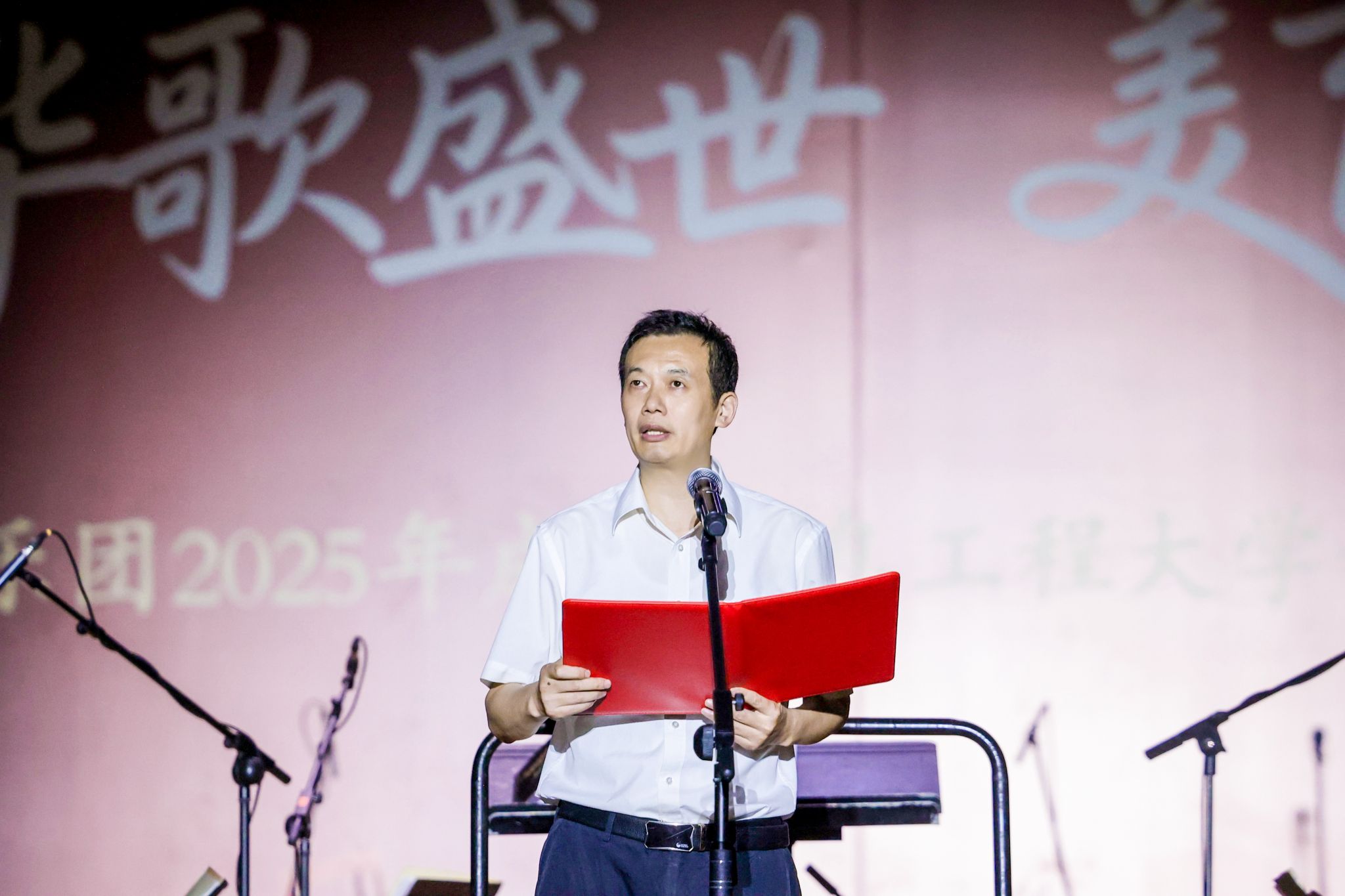 在现场观众热烈而持久的掌声中,乐团返场加演了《我和我的祖国》与《灯火里的中国》。学校合唱团与乐团共同演绎,歌声与乐声交织,表达了对祖国的深情祝福与新时代美好生活的礼赞,将全场气氛推向高潮。