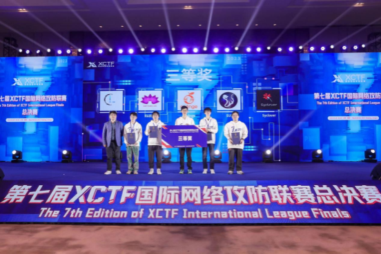 我校网络空间安全学院Syclover(三叶草)战队在第七届XCTF国际网络攻防联赛总决赛中共斩获众星计划奖、三等奖以及Dota-CTF竞赛环节季军三个奖项;网络空间安全学院信安206班陈愉鑫同学参加的联合战队荣获总决赛冠军,网络空间安全学院信安(实验)191班罗鑫同学参加的联合战队荣获总决赛二等奖。我校网络空间安全学院刘珏麟老师出席大赛闭幕式并为获奖战队颁奖。