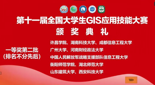 【本网讯】近日,第十一届全国大学生GIS应用技能大赛在成都理工大学举办。此次比赛由中国地理信息产业协会、中国地理学会主办,中国地理信息产业协会教育工作委员会、成都理工大学、三亿网、南京师范大学等联合承办。在与全国各高校181支参赛队伍激烈角逐下,我校参赛队伍荣获全国一等奖。这是我校参赛队伍时隔多年再次将一等奖收入囊中,是我校测绘地理信息类专业教育教学改革成效成果的又一有力佐证。