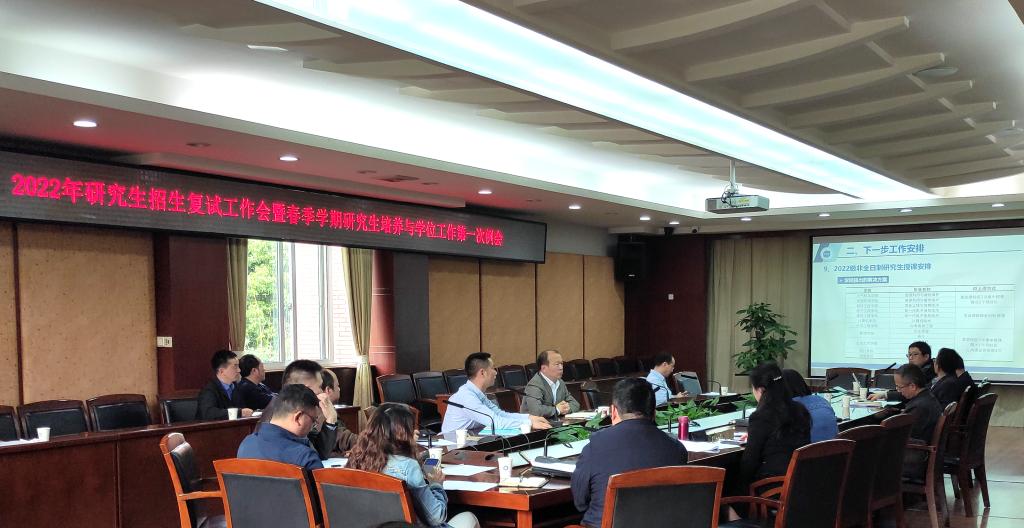 【本网讯】3月25日下午,学校2022年春季学期研究生培养与学位工作第一次例会在第七会议室组织召开,就本学期研究生培养和学位工作进行前期总结和后期部署。学校副校长何建新,各学院研究生工作负责人、教学秘书,研究生处负责人及相关工作人员参加了会议。会议由研究生处处长陈权亮主持。