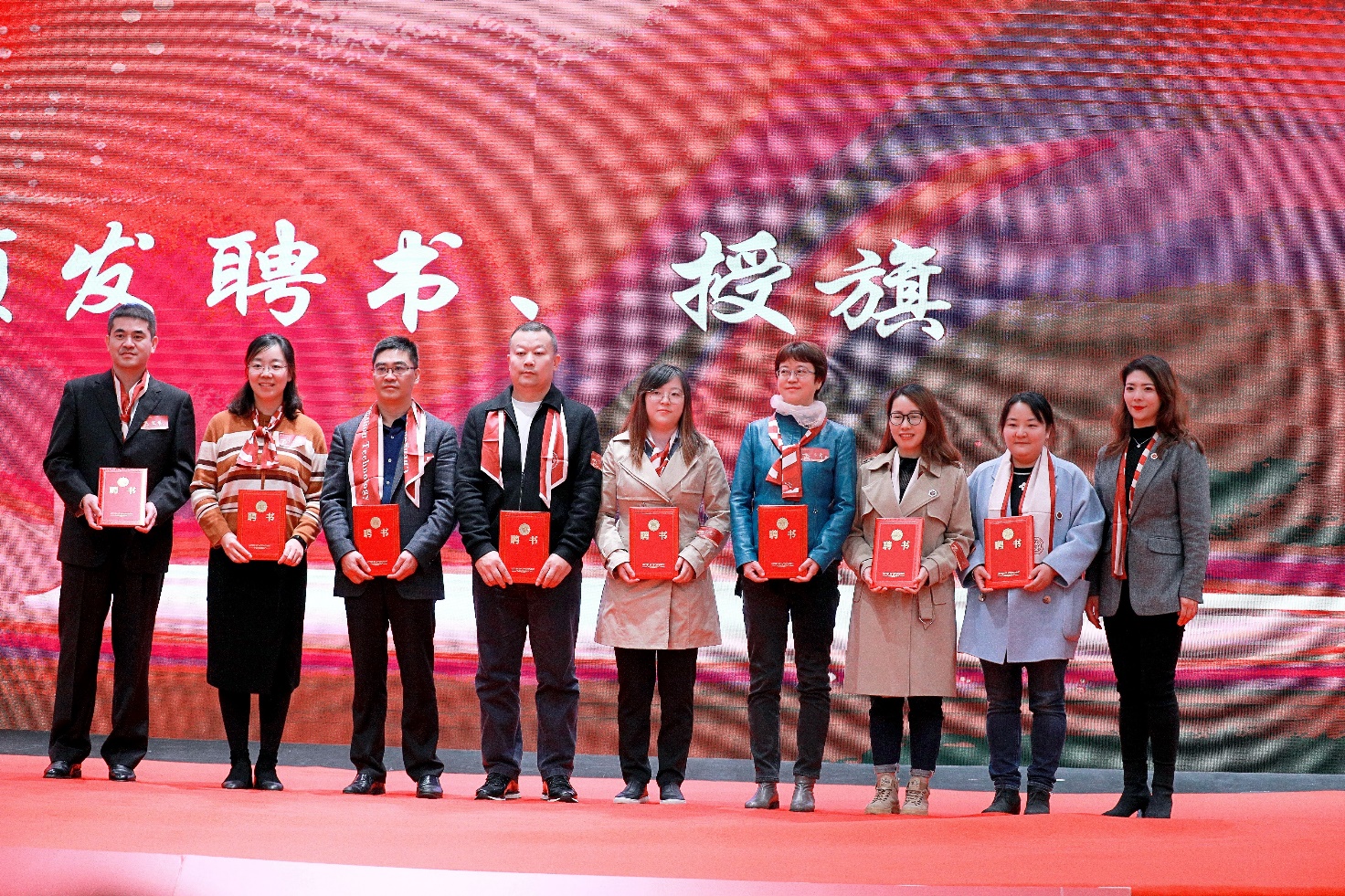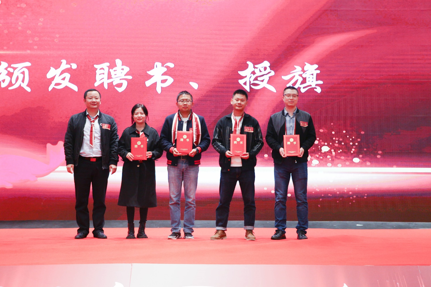 学院副院长曾胜兰为常务理事、理事颁发聘书,副院长华维为秘书长、副秘书长颁发聘书,刘琰琰为副会长颁发聘书,学院院长张宇为会长颁发聘书,张小红为校友会授旗。
