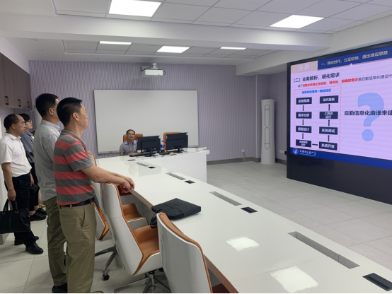 杨永成带领我校调研工作小组参观了智慧后勤中心,并就智慧后勤建设思路、项目落地落实、建设成果、效能提升等方面做了详细介绍。会后,调研工作小组分别进行了现场参观学习。