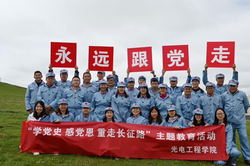 【本网讯】为庆祝建党100周年,重温党的光辉历史,继承和发扬党的光荣传统和优良作风,进一步增强党的凝聚力和战斗力,激励广大党员同志不忘初心、牢记使命。近日,光电工程学院党委组织党员前往四川若尔盖县开展主题为“学党史、感党恩,重走长征路”的主题教育活动。