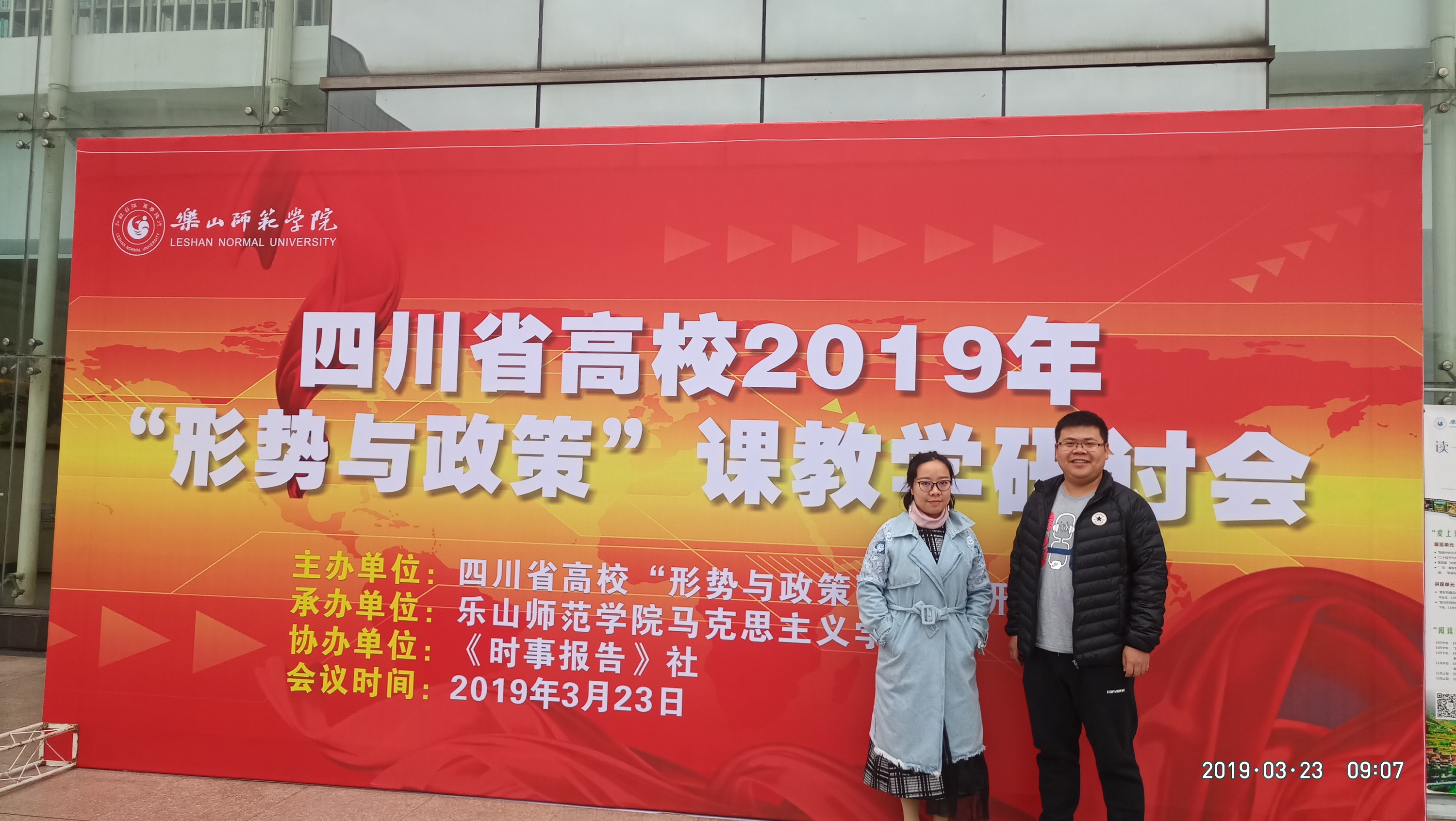【本网讯】为贯彻落实《教育部关于加强新时代高校“形势与政策”课建设的若干意见》(教社科〔2018〕1号)文件精神,不断增强形势与政策教育的针对性和实效性,四川省高校“形势与政策”课程研究会与乐山师范学院马克思主义学院于3月22日-3月24日联合举办了“四川省高校2019年‘形势与政策’课程研讨会”。马克思主义学院“形势与政策”教研室胡全、胡诗雨等2名教师参加了研讨会。