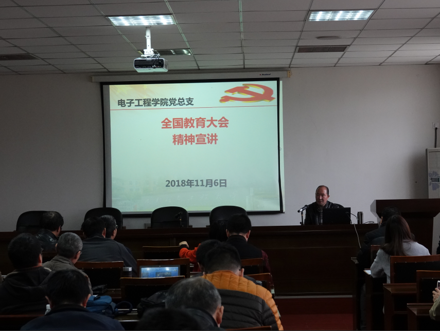 【本网讯】11月6日,电子工程学院举行教职工学习会,学院党总支书记高永华向全体教师集中宣讲全国教育大会精神。