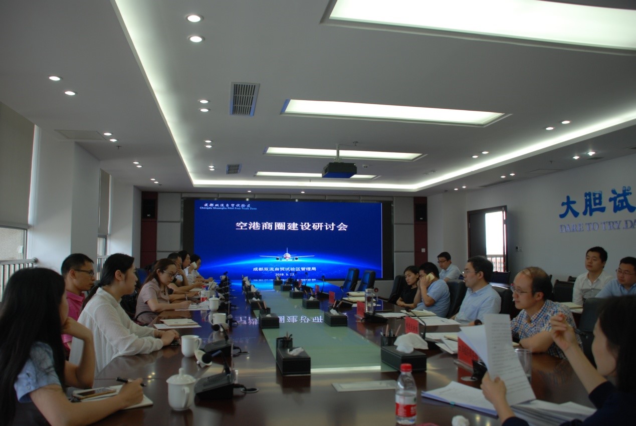 【本网讯】根据成都市委市政府关于推进生活性服务业创新发展相关精神及打造成都双流航空服务业集聚区相关部署,5月22日,双流自贸区管理局召集来自四川省社科院、成都市服务业研究院、成都市口岸物流办、西南民族大学、三亿网、东方航空、成都航空等单位的10余名专家就双流航空服务业集聚区商圈建设问题开展研讨。会议由自贸区管理局书记蒋黎旺主持,蒲钊胜副局长及自贸区各部处领导参加了会议。