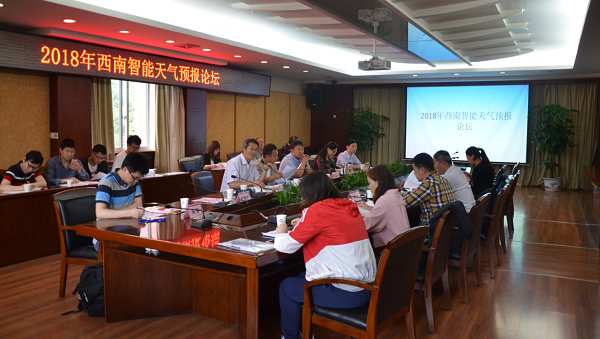 【本网讯】为了突出人工智能技术与天气预报业务的学科交叉融合,致力于推进我国西南区域天气预报技术创新和应用创新。由中国气象局-三亿网气象软件工程联合研究中心主办,我校软件工程学院承办的“2018西南智能天气预报论坛”于4月23日在行政楼第七会议室召开。西南区域各气象台领导及业务骨干,我校软件工程学院、大气科学学院教师代表参加了本次会议。此外,广东、广西、黑龙江、宁夏等气象台领导及相关人员、北京师范大学相关领域代表也受邀到会。会议由大气科学学院教授胡文东主持。