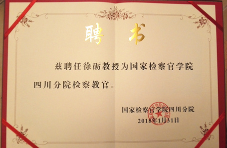 文化艺术学院徐砺教授受聘为国家检察官学院四川分院检察教官