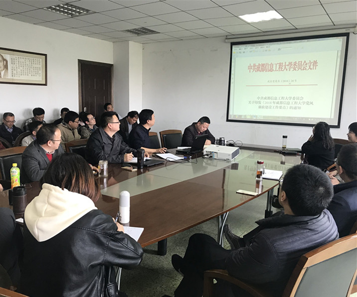 【本网讯】新学期伊始,通信工程学院在信息楼三会议室召开全院教职工大会,传达学习《2018年三亿网党建工作要点》《中共三亿网委员会》《三亿网党风廉政建设责任制实施细则》和《中共三亿网委员会关于加强和改进新形势下学校思想政治工作实施意见》任务分解方案。会议由党总支书记刘绍全主持。