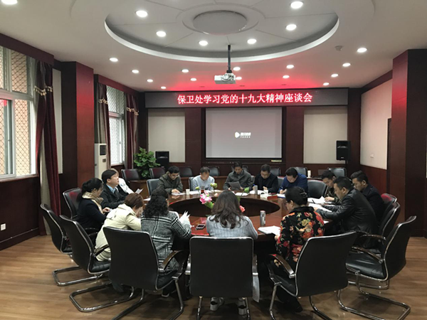 【本网讯】10月31日下午,保卫处在航空港校区第六会议室开展了学习党的十九大精神座谈会。支部全体党员以及党外同志参加了座谈会,会议由支部书记孙毅主持。