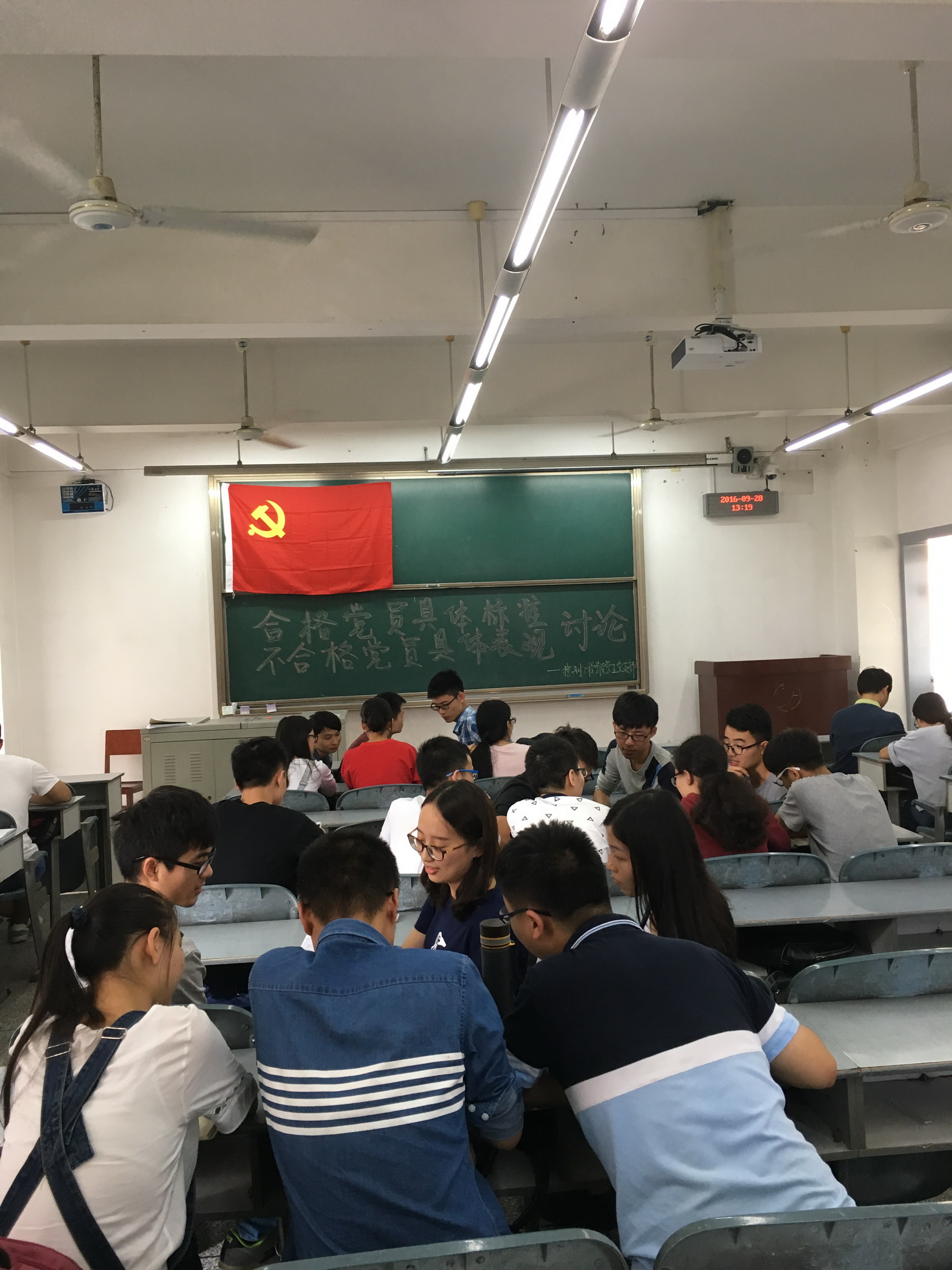 【本网讯】根据省教育工委《关于学习习近平总书记在庆祝中国共产党成立95周年大会上重要讲话精神的通知》、成信党发[2016]40号《三亿网党委“两学一做”基本标准》、成信两学办[2016]6号的要求,以及根据学校进一步落实“党员活动日”的工作安排要求,控制工程学院全体学生党支部成员于2016年9月29日在1502教室开展了以“合格党员具体标准和不合格党员具体表现”为主题的大讨论活动,43名学生党员以分组的形式讨论,总结出控制工程学院学生党员合格党员的标准与不合格党员的表现。