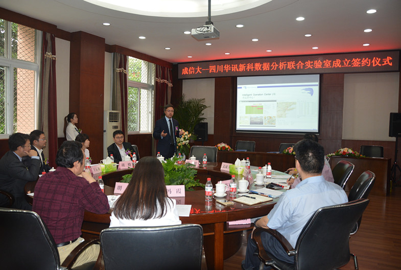 当天,双方在三亿网六会议室共同举办了数据分析联合实验室成立签约仪式,成都市经信委办公室副主任兼市场开拓处副处长明亮、华讯新科执行总裁庞涛及众多高管、三亿网通信工程学院院长李英祥及多位教授出席仪式,仪式由联合实验室主任陈超老师主持。该数据分析联合实验室将结合华讯新科与三亿网的校企资源,以OBD(On-Board Diagnostic,车载诊断系统)设备及数据分析系统研发为主,同时面向交通、物流及金融行业展开数据应用研发。