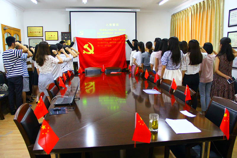 其次,进行庄严的入党宣誓仪式,由组织员刘宇老师领誓,新入党的20名预备党员,面对着鲜红的党旗,举起右手庄严宣誓,对党忠诚的决心都包含在每一句入党誓词里,身心接受了一次特殊的洗礼。