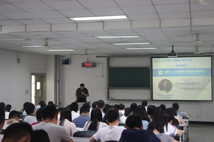 【本网讯】6月24日下午,2016年人口健康共享杯大赛宣讲会在我校顺利举办。讲座邀请到中国医学科学院基础医学院研究所信息网络中心郝志勇,大气科学学院教授王式功以及他的获奖团队介绍人口健康共享杯大赛的具体内容以及传授相关经验。大气科学学院学工办主任刘宇,辅导员尹欣出席了本次宣讲会。