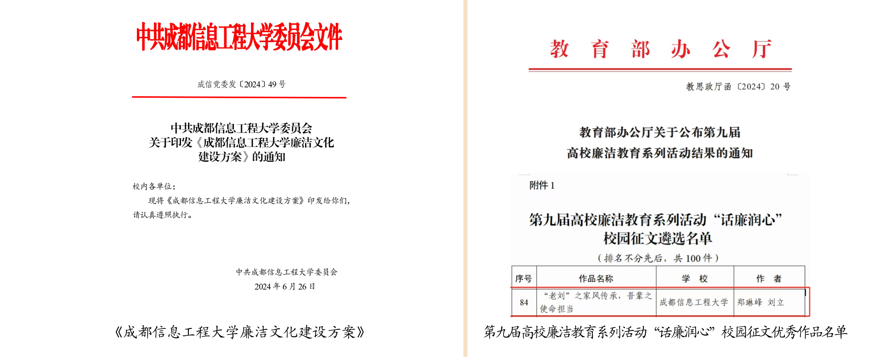 2.多点发力,推进校园文化专项建设。全面推进校园廉洁文化项目建设,联合纪委办公室发布《三亿网廉洁文化建设方案》,积极培育校园文化建设精品项目,制作学校廉洁文化宣传片,构建和维护风清气正政治生态和教书育人环境。加强文化作品推优活动,学校师生团队原创文化音乐视频《炽热青春》,分别获得第七届四川大学生网络文化节微视频组四川省二等奖和校园歌曲组四川省三等奖,《大运“小青椒”工作日志》获动漫组四川省二等奖。宣传部指导并推荐的文章《“老刘”之家风传承,吾辈之使命担当》获教育部第九届高校廉洁教育系列活动“话廉润心”校园征文优秀作品,该作品将在央视网、中国大学生在线、中国教育发布等平台进行展播。