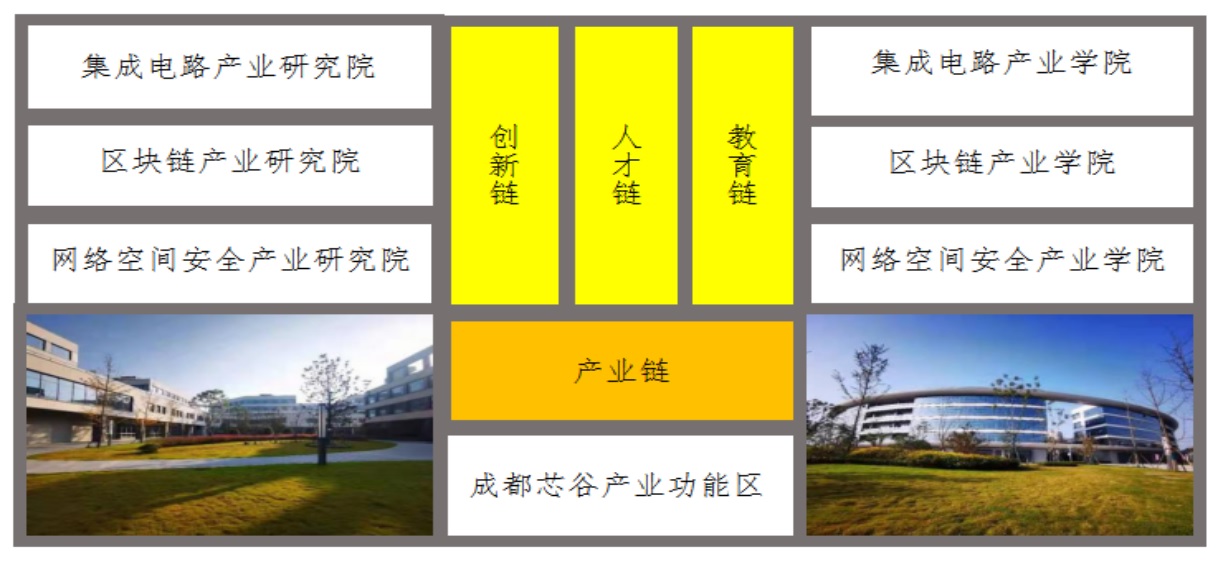 与成都市双流区人民政府签订深化校地合作共建协议,集成电路、网络空间安全、区块链三个新型产业学院入驻成都芯谷产业园区,打造了集教学、研发、实训(定培)、就业于一体的政产学研用示范区,实现成信大的科技创新、人才培养与产业需求精准有效对接,为区域经济社会发展提供源源不断的科技创新动力。