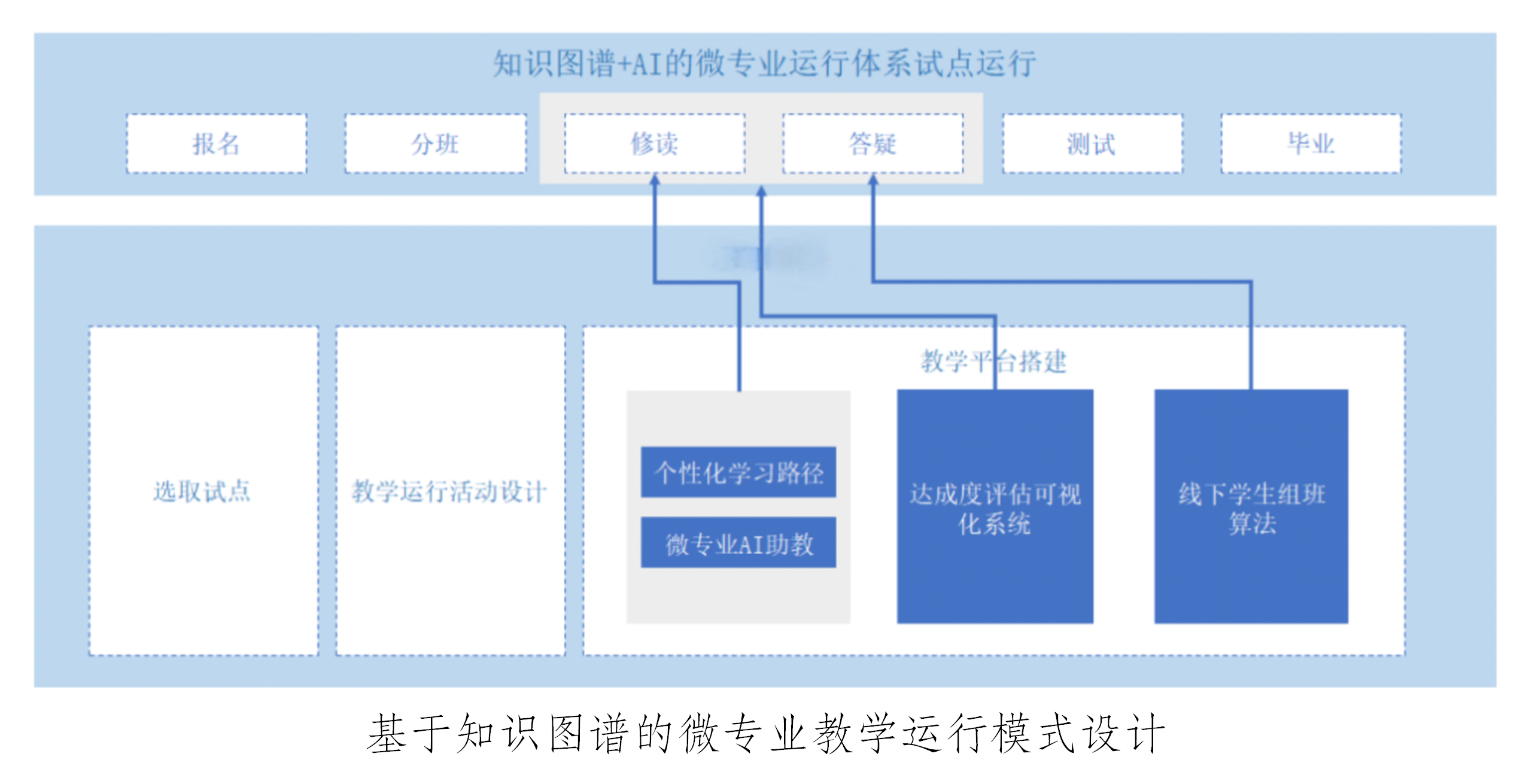 运行模式设计:制定发布《微专业建设与管理办法(试行)》和《微专业教学运行管理工作方案》,设计基于知识图谱的教学运行模式,组建专项工作团队,实施线上线下结合运行管理模式。实现从微专业培养方案制定、课程或知识点建设、教学运行与管理过程实施、教学评价与考核、毕业要求制定与审核,到毕业证书和成绩单发放的全流程覆盖,形成了基于知识图谱驱动的微专业运行闭环。