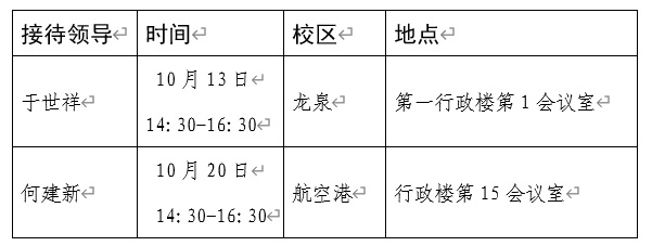 现将10月校领导接待日安排公布如下:
