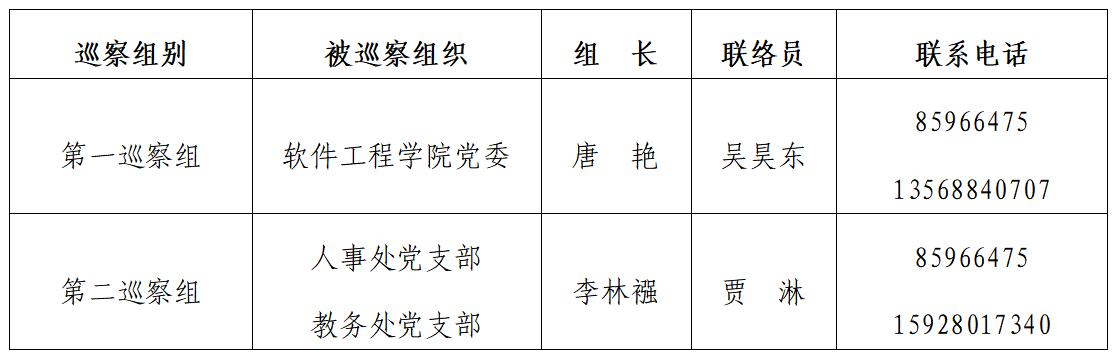 根据《中共三亿网委员会内部巡察工作实施意见》的规定,按照学校党委巡察工作领导小组的统一部署,学校党委巡察组定于2020年6月10日至6月24日,对软件工程学院党委、人事处党支部、教务处党支部开展校内巡察工作。现将有关事宜公告如下: