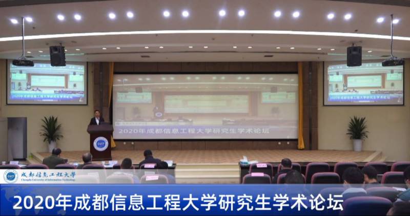 【本网讯】11月27日,学校2020年研究生学术论坛成功举办。本次论坛以“立足前沿,求实创新,筑梦成信”为主题,采用“线上线下结合”的方式举行。特邀嘉宾电子科技大学邱昆教授、中国气象科学院任宏利研究员和西南交大官振中教授,学校副校长舒红平教授,各学院主管研究生教育的领导、相关职能部门负责人、研究生导师和研究生代表约1000人分别在主会场国际会议厅、三个分会场和网络会议参加了开幕式,同时进行网络直播。开幕式由学校研究生处长陈权亮主持。