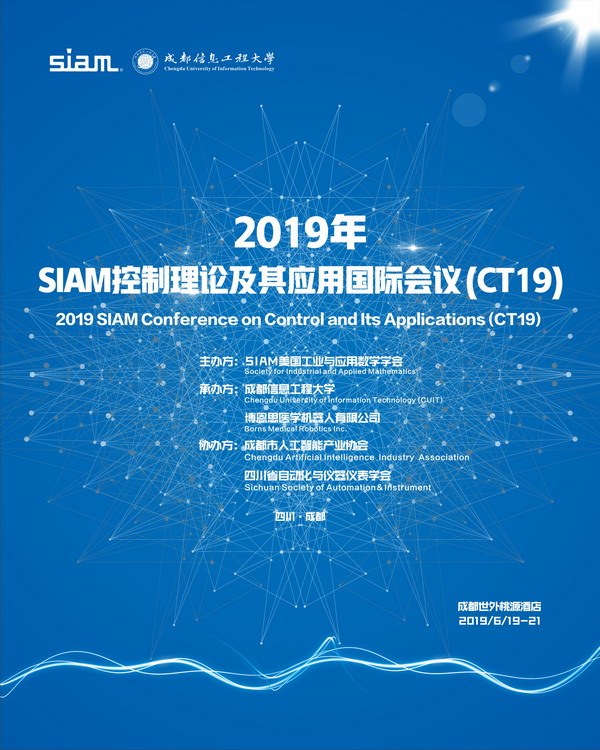 2019年SIAM控制理论及其应用国际会议(SIAMCT19)由美国工业和应用数学学会(Societyfor Industrial and Applied Mathematics,SIAM)主办,三亿网承办,将于2019年6月19日至21日在中国成都(成都世外桃源酒店)隆重举行。会议主要围绕控制理论及系统等问题展开讨论,旨在为控制领域的专家学者及企业提供一个分享研究成果、讨论存在的问题与挑战、探索前沿科技的国际性合作交流平台。