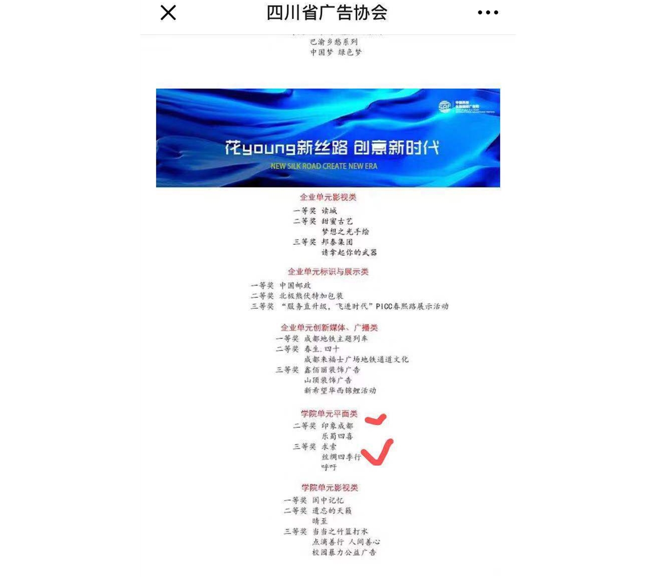 我校学子斩获2019年“首届中国西部丝路国际广告大赛”学院单元平面类奖项